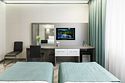 Семейный номер площадью 39 кв.м. В номере двуспальная кровать Queen-size и односпальная кровать, шкаф для одежды, письменный стол, кофейный столик, телевизор с плоским экраном и Smart TV, бесплатный Wi-Fi, телефонная связь, сейф, кондиционер, электрический чайник с чайным набором, мини-холодильник, набор посуды. Ванная комната с душем укомплектована набором полотенец, халатами, тапочками, косметическими и гигиеническими принадлежностями. Номер расположен на 2 этаже. В номере категории «Семейный трехместный номер с кроватью Queen-size» предоставляется премиальная британская косметика бренда «The White Company», являющаяся синонимом идеальной простоты, повседневной роскоши и безупречного качества. Лучшая коллекция элегантных и восстанавливающих ароматов для тела в отеле «Parallel Congress by Stellar Hotels, Krasnodar».Услуги и удобства