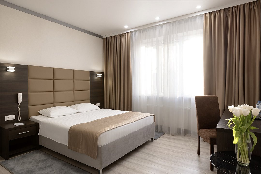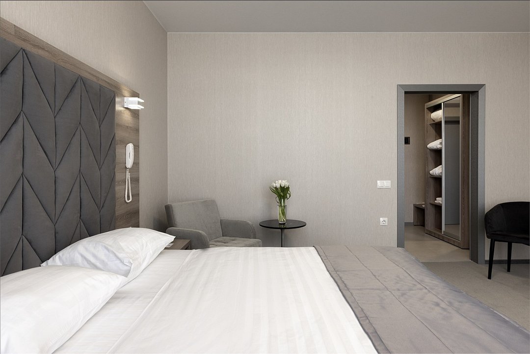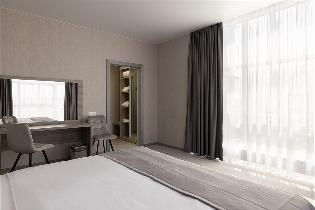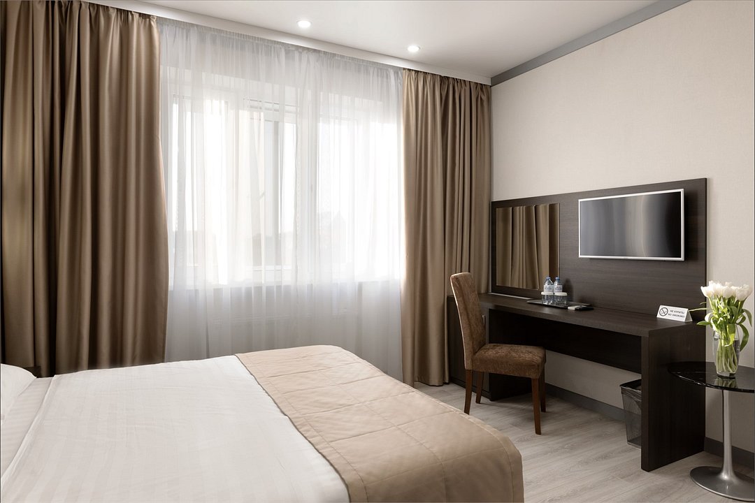 Просторный номер площадью 31 кв.м. В номере большая двуспальная кровать Queen-size, шкаф для одежды, письменный стол, кофейный столик, телевизор с плоским экраном и Smart TV, бесплатный Wi-Fi, телефонная связь, кондиционер, электрический чайник с чайным набором и мини-холодильник. Ванная комната с душем укомплектована набором полотенец, халатами, тапочками, косметическими и гигиеническими принадлежностями В номере категории «Улучшенный номер с кроватью Queen-size» предоставляется премиальная британская косметика бренда «The White Company», являющаяся синонимом идеальной простоты, повседневной роскоши и безупречного качества. Лучшая коллекция элегантных и восстанавливающих ароматов для тела в отеле «Parallel Congress by Stellar Hotels, Krasnodar».Услуги и удобства