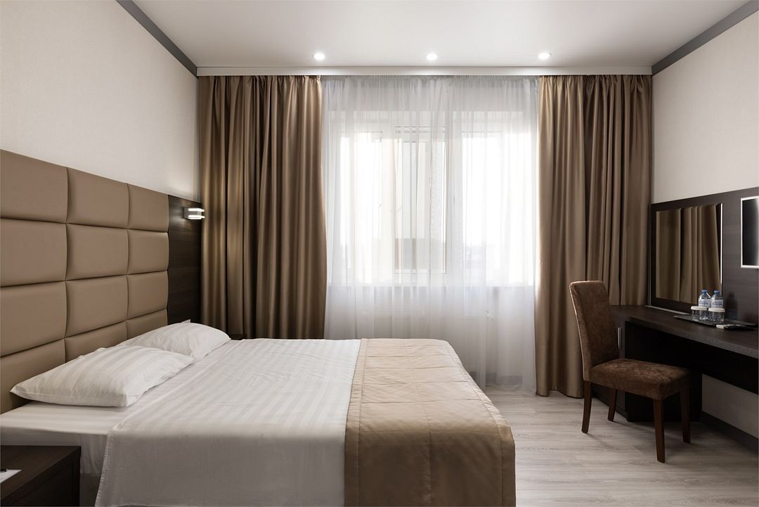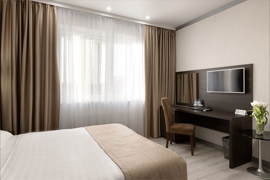 Номер площадью 23 кв.м. В номере 1 кровать или 2 раздельные односпальные кровати, шкаф для одежды, письменный стол, телевизор с плоским экраном и Smart TV, бесплатный Wi-Fi, телефонная связь, электрический чайник с чайным набором, кондиционер и мини-холодильник. Ванная комната с душем укомплектована набором полотенец, халатами, тапочками, косметическими и гигиеническими принадлежностями. В номере категории «Стандарт с 1 кроватью или 2 отдельными кроватями» предоставляется премиальная британская косметика бренда «The White Company», являющаяся синонимом идеальной простоты, повседневной роскоши и безупречного качества. Лучшая коллекция элегантных и восстанавливающих ароматов для тела в отеле «Parallel Congress by Stellar Hotels, Krasnodar».Услуги и удобства