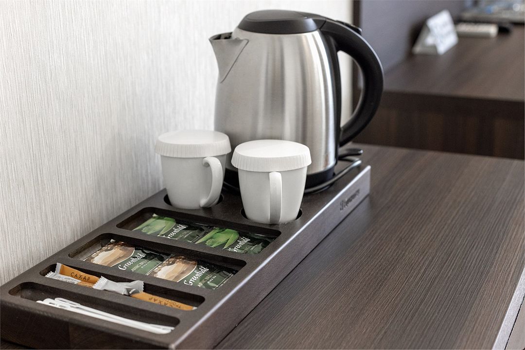 телевизор, кабельное телевидение, Wi-Fi, интернет, кондиционер, фен, электронные замки, утюг, ванная комната, душевая кабина, санузел, банные принадлежности, халаты, банные полотенца, тапочки, гигиенические средства, косметические средства, полутораспальная кровать, гипоаллергенное белье, гладильная доска, ортопедический матрас, тумбы, шкаф для одежды, письменный стол, багажная тумба, зеркало, обслуживание номеров, унитаз, раковина, питьевая вода, отопление, душ, вид на город, вид во двор, стаканы, стул, туалетные средства, туалет, внутренний телефон, телевизор с плоским экраном, мини-холодильник, шкаф-купе, телевизор со Smart TV, номер для некурящих, можно с питомцамиВ гостиничном номере