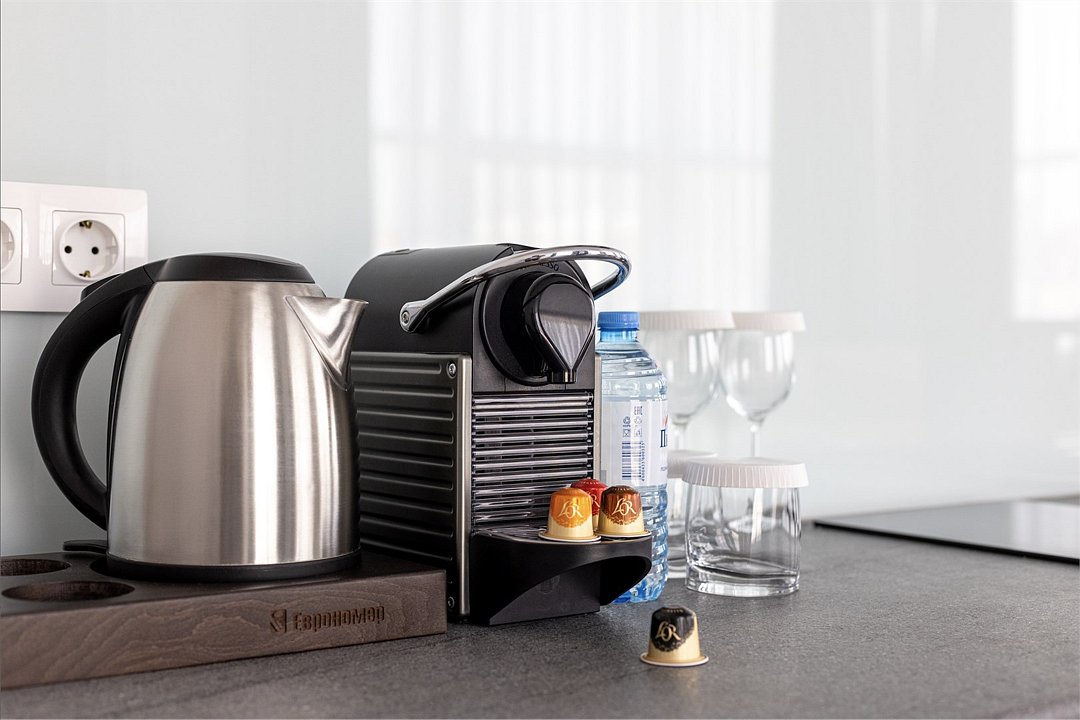 телевизор, два телевизора, кабельное телевидение, Wi-Fi, интернет, холодильник, кондиционер, фен, электронные замки, кофемашина, утюг, ванная комната, ванна, санузел, банные принадлежности, халаты, банные полотенца, тапочки, гигиенические средства, косметические средства, кровать «King size», гладильная доска, диван, тумбы, стулья, шкаф для одежды, вешалки, журнальный столик, обеденный стол, багажная тумба, барная стойка, зеркало, две комнаты, кухня, чайный набор, обслуживание номеров, чайник, унитаз, раковина, мягкая мебель, питьевая вода, гостиная зона, отопление, вид на город, стаканы, стул, стол, туалетные средства, туалет, сплит-система, панорамные окна, диван-кровать, раскладной диван, внутренний телефон, телевизор с плоским экраном, мини-кухня, кухонный уголок, шкаф-купе, телевизор со Smart TV, номер для некурящих, можно с питомцамиВ номере