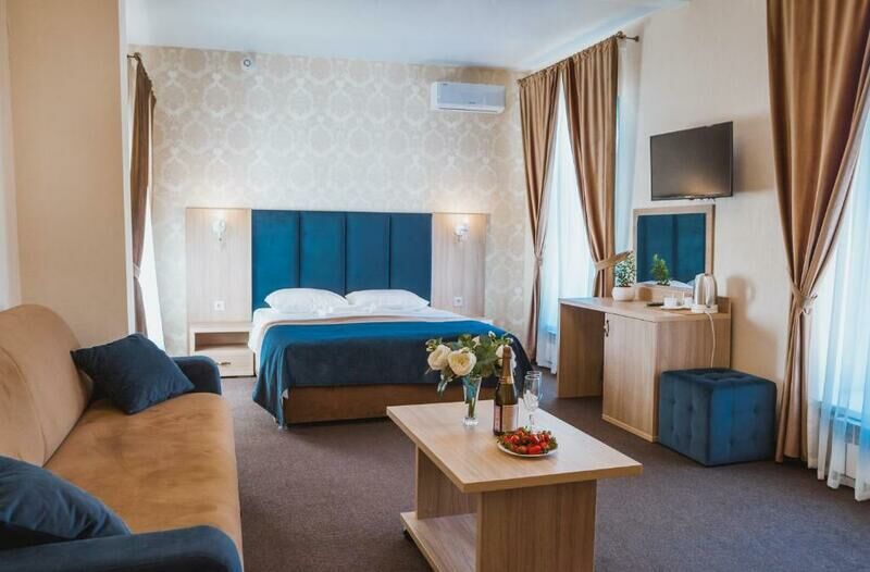 Гостиница разместилась на втором этаже двухэтажного исторического здания, расположенного среди малоэтажной застройки на улице Митрофана Седина. Отдыхающих ожидают номера Стандарт, Люкс и Делюкс, вмещающие от 1 до 4 гостей. Все номера оснащены кондиционером и санузлом с душем или ванной, в комнатах есть необходимая техника — телевизор, фен, электрочайник, удобная мебель, в интерьере использован натуральный текстиль.