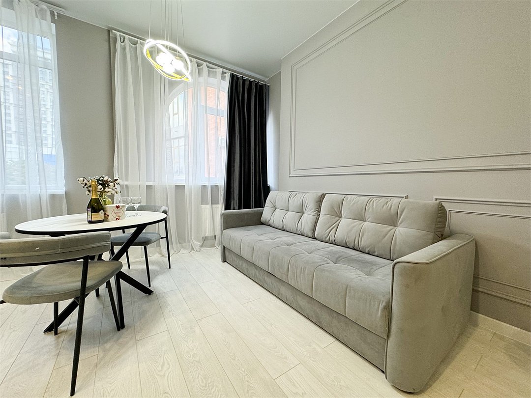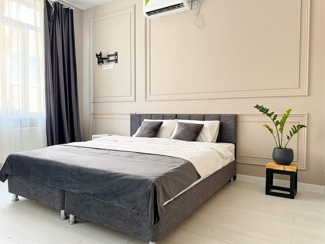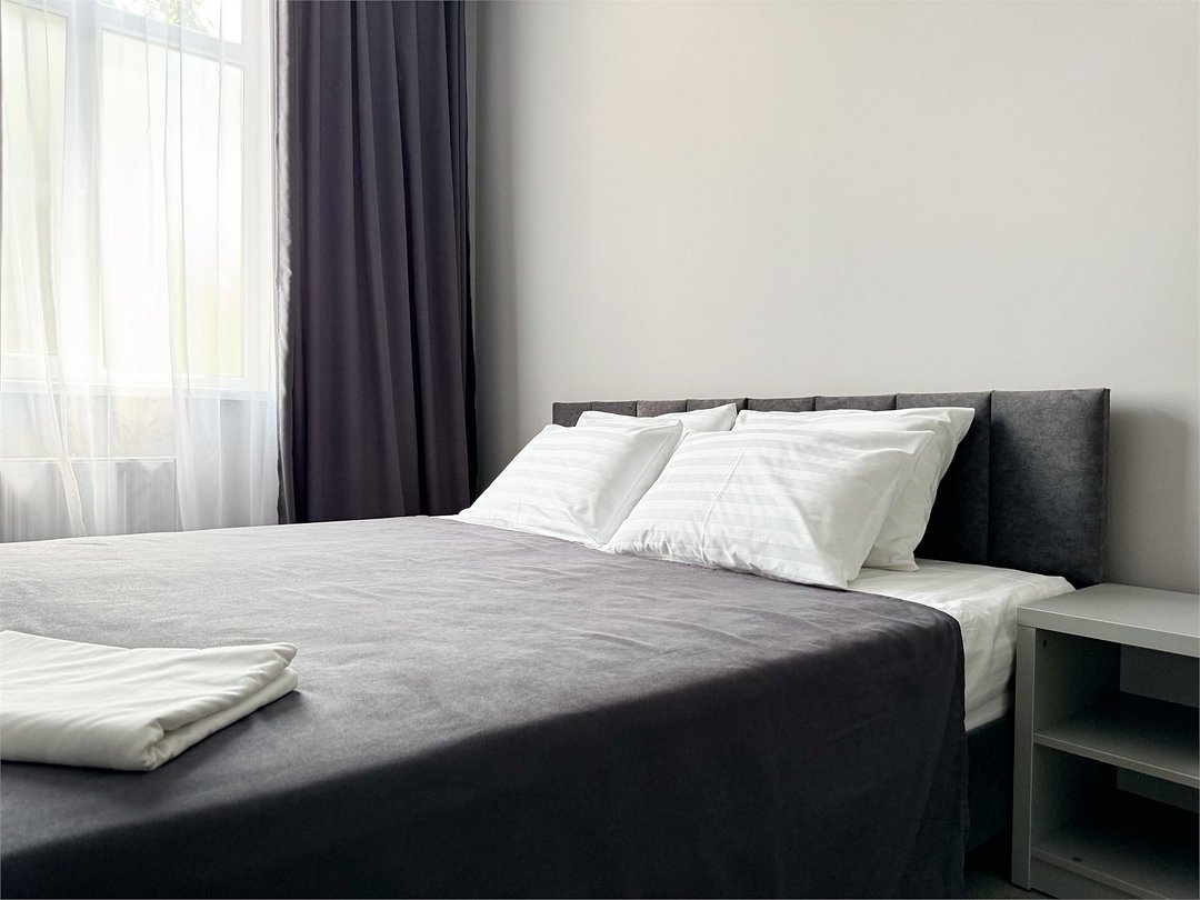 Прекрасная однокомнатная квартира , огромная 2х спальная кровать (либо 2 односпальные ) и в гостиной раскладной диван (160/200) . Полноценная кухня со всем необходимым .Услуги и удобства