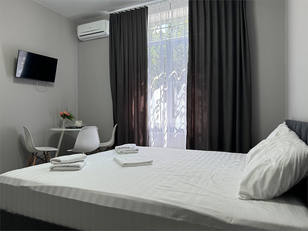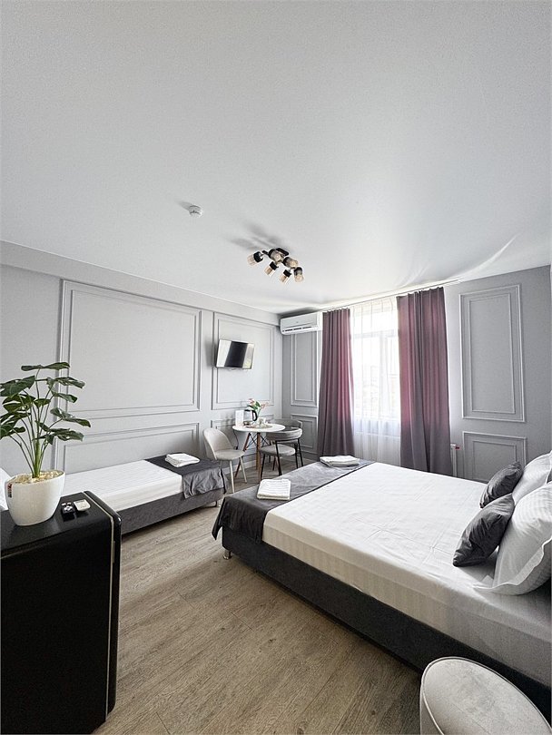Номер стандарт в нашей гостинице предлагает идеальное сочетание комфорта и стиля. Расположенный в непосредственной близости от живописного парка Галицкого, он станет отличным выбором как для туристов, так и для деловых путешественников. Оборудование номера Кровати: Просторная двуспальная или две одноместные кровати с ортопедическими матрасами. Мебель: Уютный письменный стол, стулья, прикроватные тумбочки и шкаф для одежды. Техника: Плазменный телевизор, холодильник, чайник, фен и кондиционер. Интернет: Бесплатный Wi-Fi на всей территории номера. Санузел: Современная ванная комната с душевой кабиной, туалетом и набором toiletries. Дополнительные услуги Завтрак: Возможность заказа завтрака в номер. Парковка: Бесплатная парковка для гостей. Почему стоит выбрать наш номер Уникальное расположение: Неподалеку находится парк Галицкого, идеальный для прогулок и отдыха на природе. Удобство: Удобный доступ к общественному транспорту и основным достопримечательностям города. Комфорт: Мы заботимся о своих гостях и стремимся создать атмосферу уюта и спокойствия.Услуги и удобства