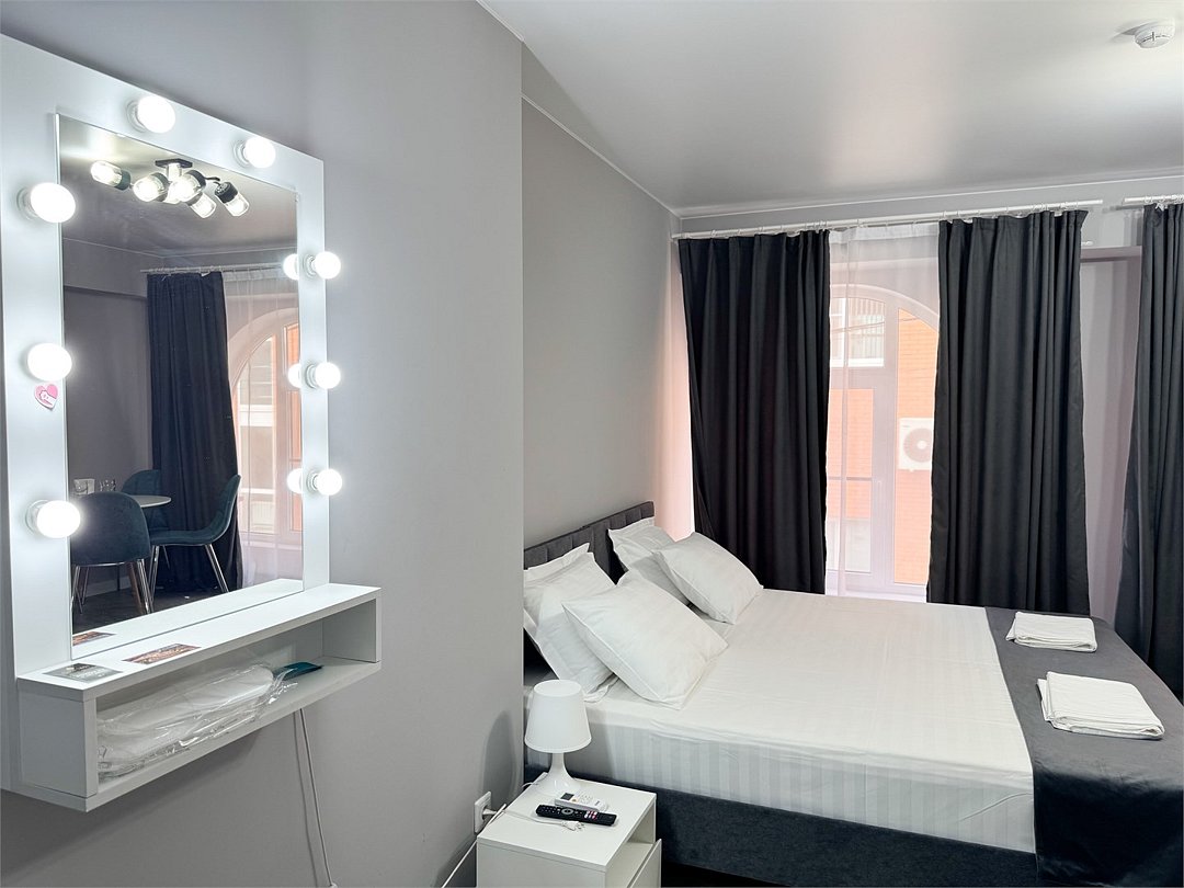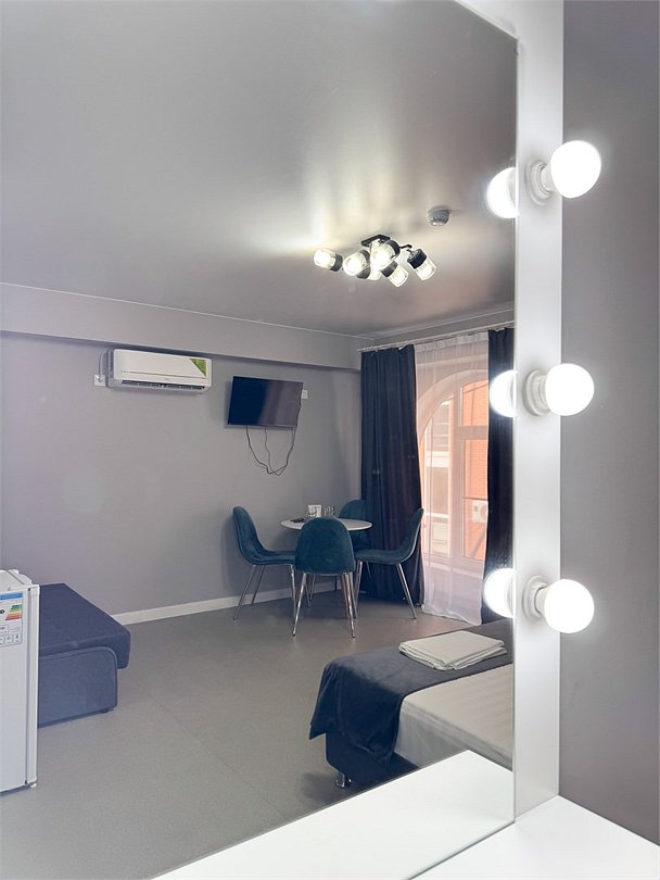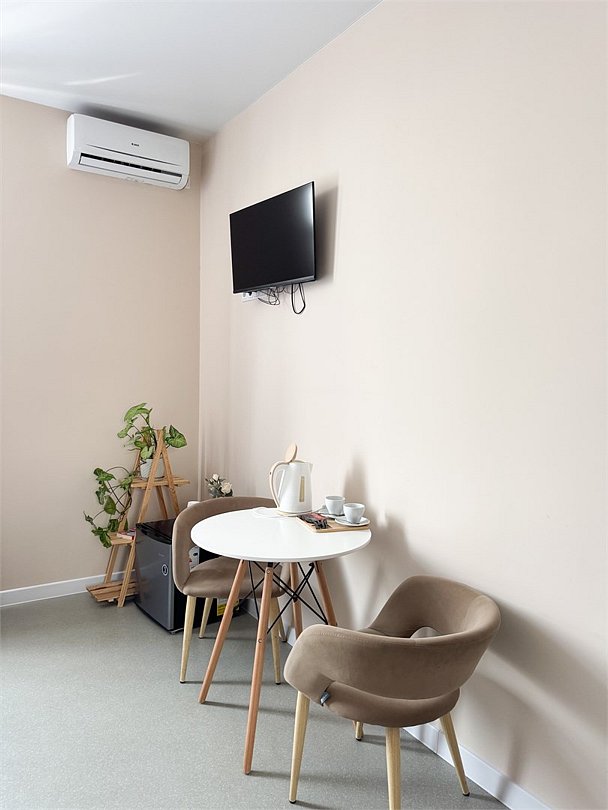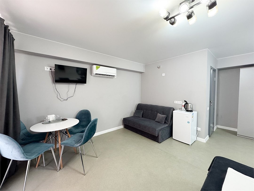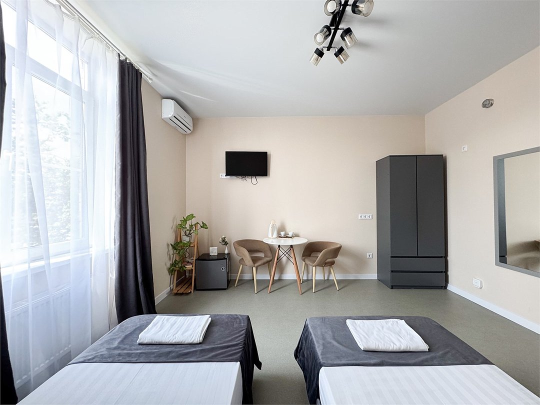 Большой апарт номер с полноценной кухней, большой диван кровать ( 160/200) и кресла. Номер находится в цокольном этаже с двумя большими окнамиУслуги и удобства