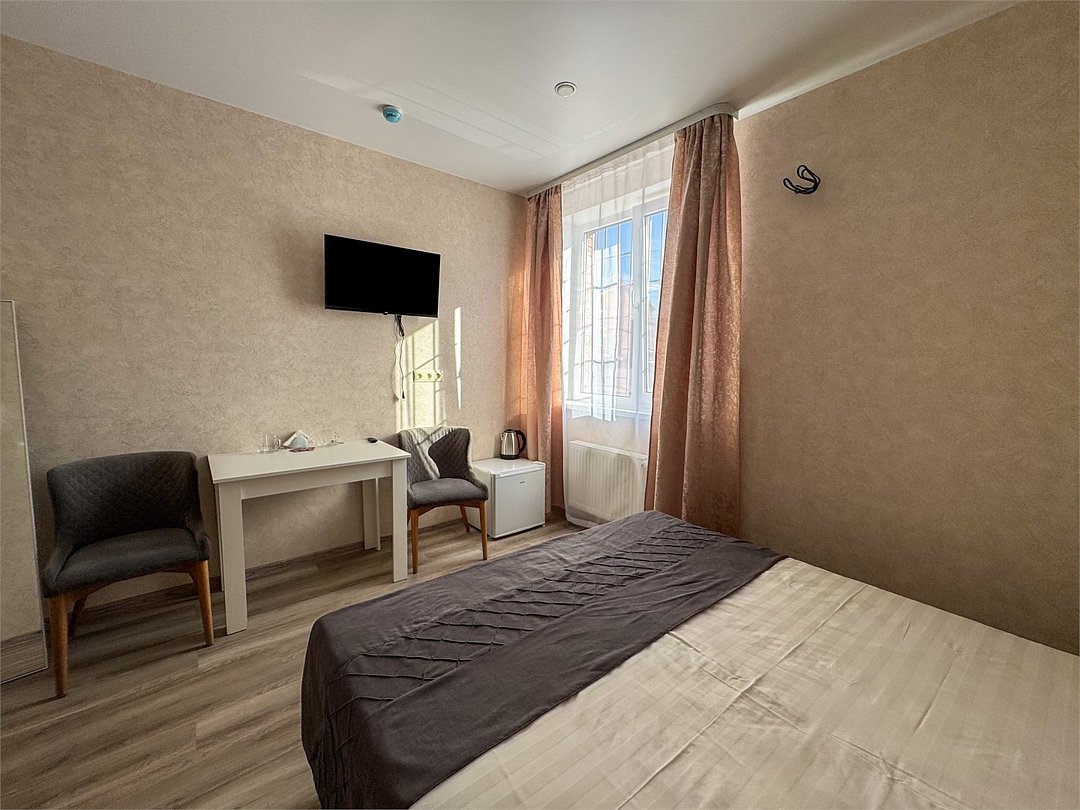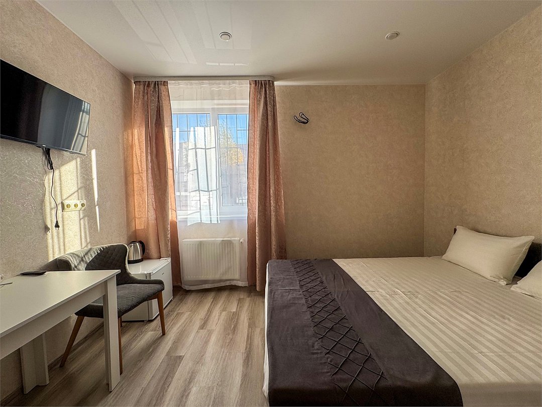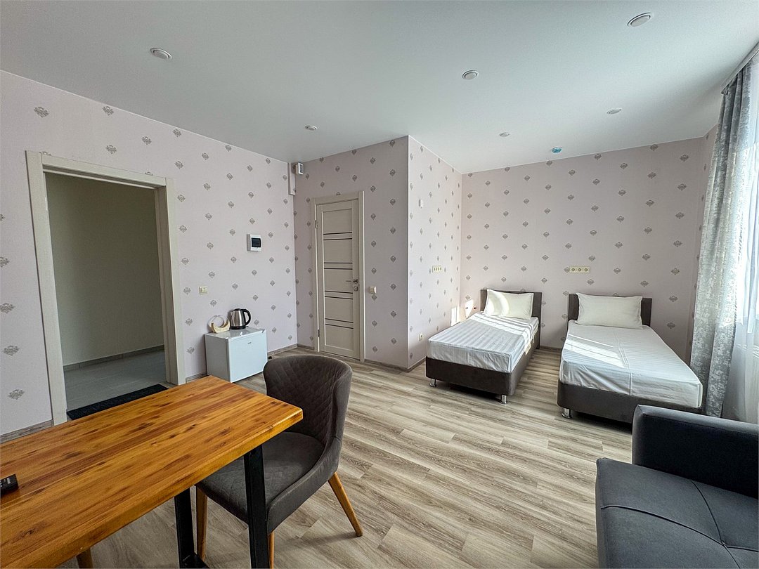 Номер площадью 20 кв. м предлагает достаточно места с комфортом провести время вдвоем. Просторная планировка позволяет вам расслабиться и наслаждаться уютом. Комфортабельные кровати: В вашем распоряжении большая двуспальная кровать с мягким матрасом (либо 2 раздельные) и качественным постельным бельем, обеспечивающая вам здоровый и крепкий сон. Современные удобства: Номер оборудован кондиционером, телевизором с плоским экраном и бесплатным Wi-Fi. Здесь вы найдете всё необходимое для комфортного проживания.Услуги и удобства