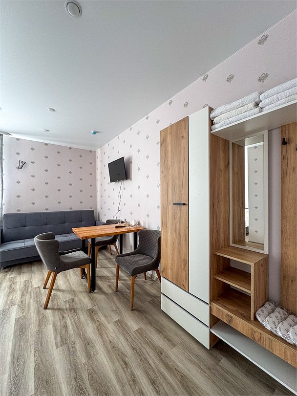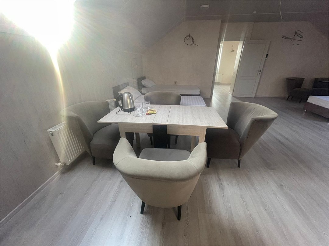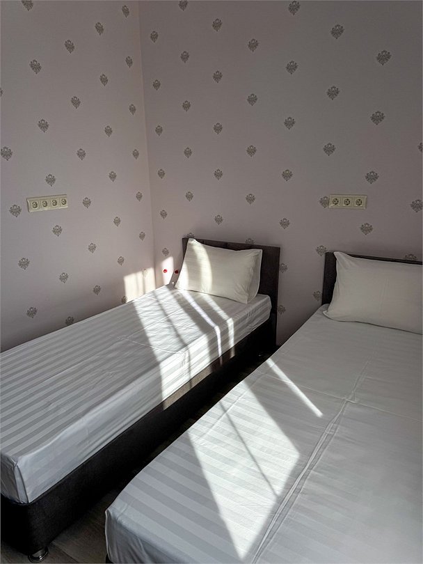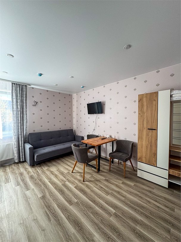 Просторное пространство: Номер площадью 45 кв. м предлагает достаточно места с комфортом провести время всей семьей. Просторная планировка позволяет вам расслабиться и наслаждаться уютом. Комфортабельные кровати: В вашем распоряжении большая двуспальная кровать с мягким матрасом (либо 2 односпальные кровати ) и качественным постельным бельем, обеспечивающая вам здоровый и крепкий сон, уютный 2х спальный диван. Современные удобства: Номер оборудован кондиционером, телевизором с плоским экраном и бесплатным Wi-Fi. Здесь вы найдете всё необходимое для комфортного проживания.Мы гордимся высоким уровнем чистоты и обслуживания. Каждый номер проходит тщательную уборку, а также обеспечивается запас средств личной гигиены. Собственная ванная комната: В вашем номере есть отдельная ванная комната с душевой кабиной, свежими полотенцами и предоставляемыми туалетными принадлежностями.Услуги и удобства