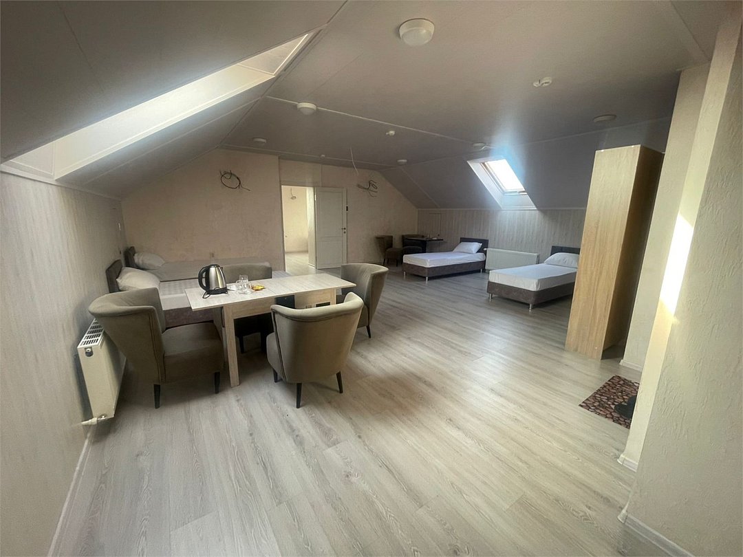 Представляем вам наш уникальный номер на 6 человек на мансардном этаже в гостевом доме «Сердце Кубани» — идеальное место для дружеских встреч или семейного отдыха! Описание номера Этот просторный и светлый номер создан для комфортного проживания больших компаний или семей. Вам гарантировано максимальное удобство и уют, ведь в нашем номере есть всё, что нужно для отличного отдыха: Вместимость до 6 человек: Уютные кровати и современная мебель обеспечивают всем достаточное пространство для отдыха. Две ванные комнаты: Забудьте о толчее! Наличие двух отдельных ванных комнат позволяет легко и быстро подготовиться к выходу, что особенно удобно для больших групп. Мансардный этаж: Наслаждайтесь особой атмосферой мансарды с её уютным скатом крыши, большими окнами и прекрасным видом на город. Здесь царит тихая и романтическая обстановка, идеально подходящая для отдыха. Современные удобства: В номере есть всё необходимое — телевизор, бесплатный Wi-Fi, кондиционер, холодильник и вся необходимая гигиеническая продукция. Почему стоит выбрать наш номер? Простор и комфорт: Благодаря продуманной планировке, здесь достаточно места для отдыха, общения и непринужденных бесед. Идеально для компаний и семей: Идеальное место для незабываемого совместного отдыха с близкими друзьями или членами семьи. Удобное расположение: Находясь на мансардном этаже, вы сможете насладиться тишиной и уютом, не выходя из центра города. Бронируйте номер на мансардном этаже в гостевом доме «Сердце Кубани» и создайте незабываемые воспоминания с близкими! Мы гарантируем, что ваш отдых будет комфортным и приятным!Услуги и удобства