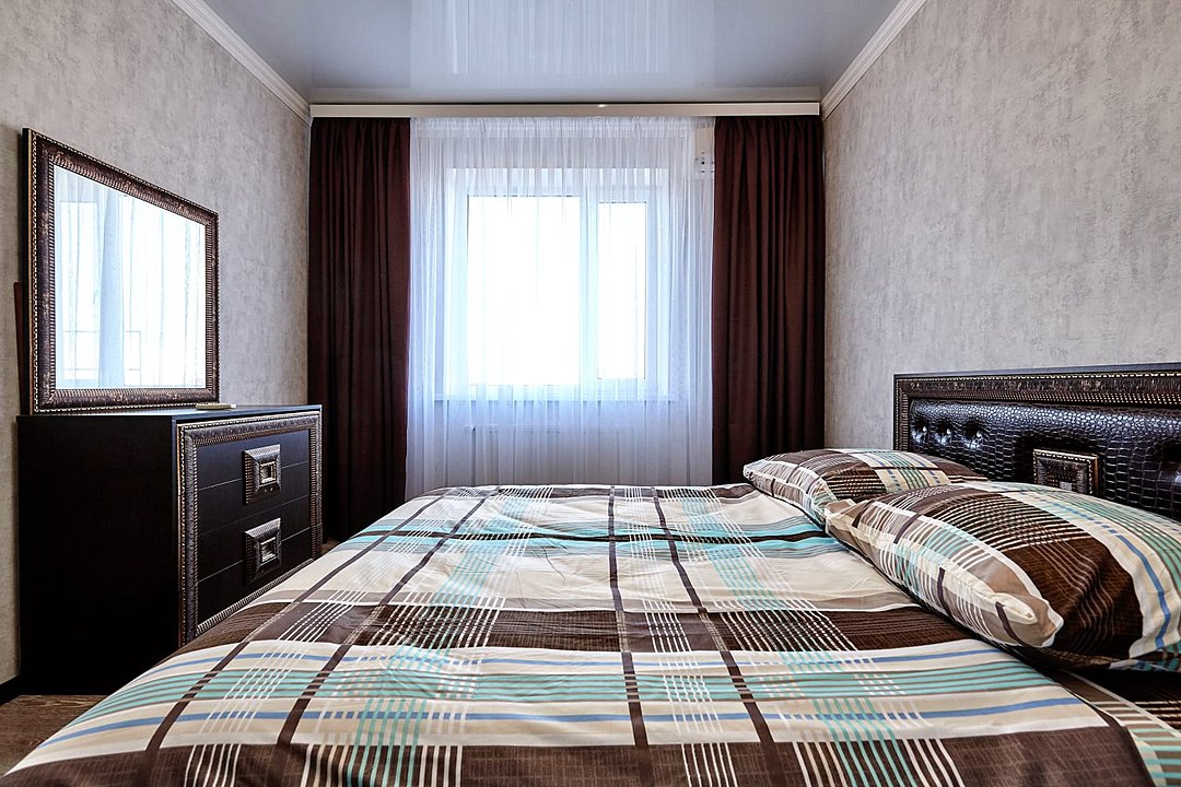 Здесь предусмотрено всё, чтобы отдых был наполнен удобством и уютом. В апартаментах есть двуспальная кровать с качественным матрасом и два уютных двуспальных дивана, свежие мягкие полотенца, телевизор с приставкой Билайн, кондиционер, стиральная машина, кухонная техника, гладильные принадлежности, ванная комната и Высокоскоростной Wi-Fi.