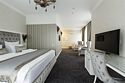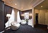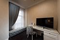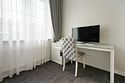 телевизор, кабельное телевидение, Wi-Fi, интернет, телефон, система климат-контроля, светильник, фен, будильник, электронные замки, ванная комната, душевая кабина, ванна, санузел, халаты, тапочки, двуспальная кровать, стулья, шкаф для одежды, вешалки, журнальный столик, письменный стол, зеркало, эксклюзивная мебель, унитаз, раковина, мягкая мебель, душ, вид на город, стул, стол, туалетные средства, туалет, сплит-система, цифровое тв, внутренний телефон, телевизор с плоским экраном, мини-холодильник, пуфикВ номере