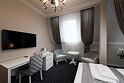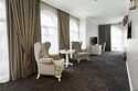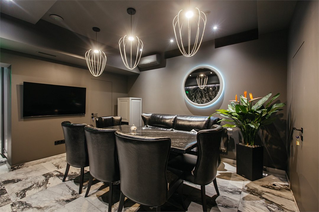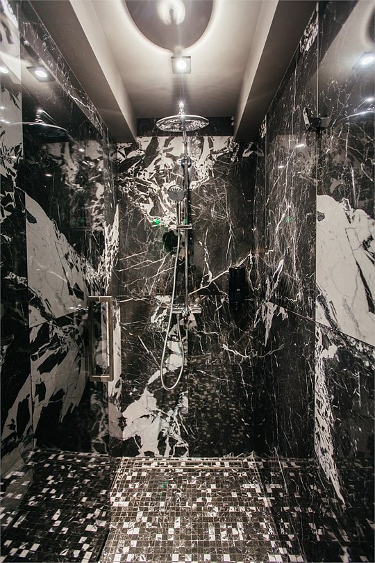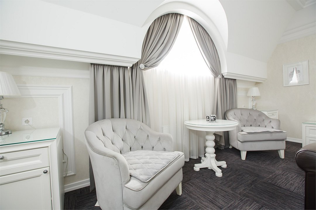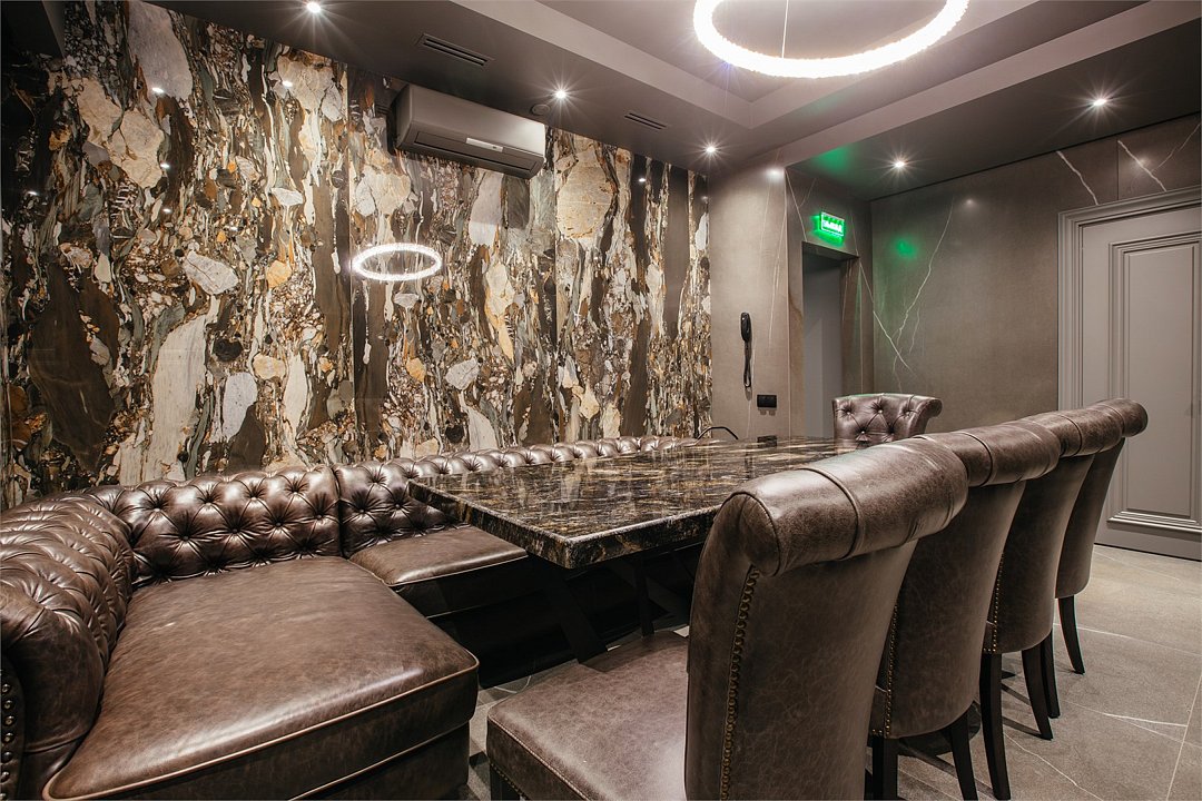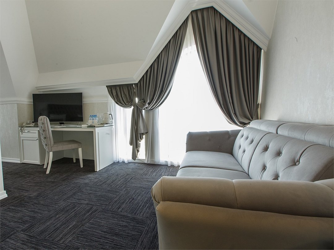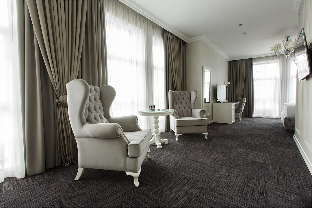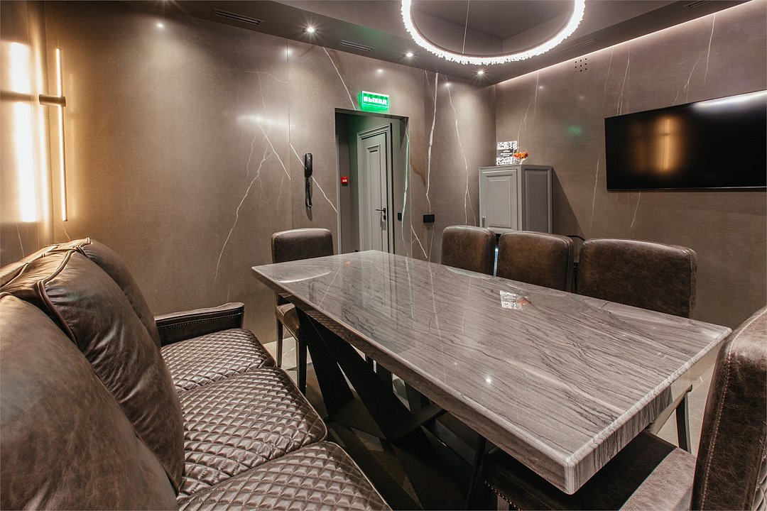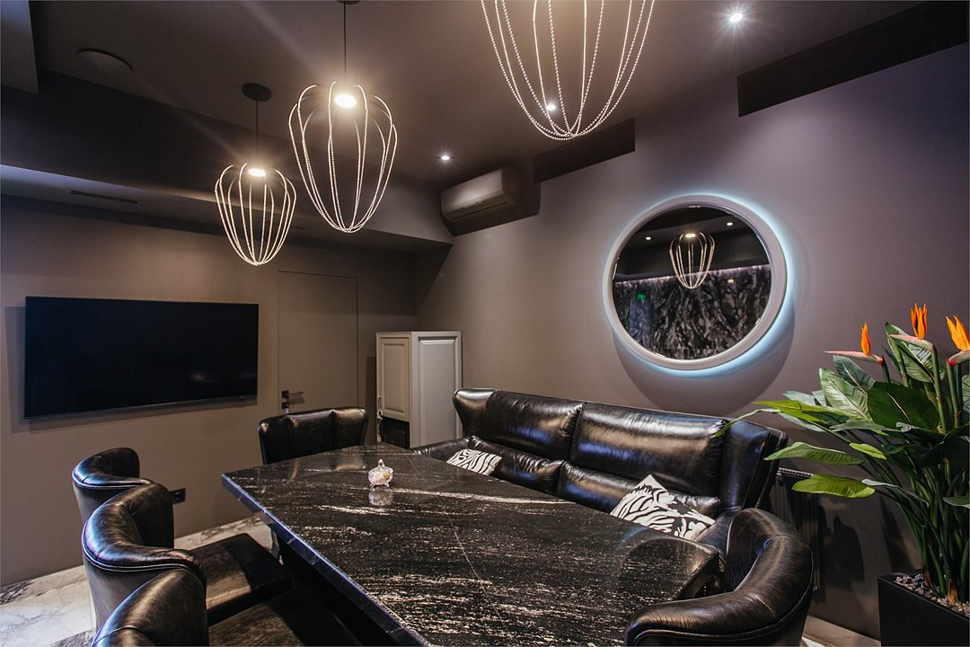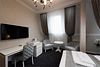 Люкс с хаммамом «Римская баня» и джакузи оснащен комнатой с римской парной и джакузи с гейзером, комнатой отдыха со столом из натурального гранита, кожаными стульями и комфортабельным кожаным диваном, мини-баром (минеральная вода, крепкие алкогольные напитки, снеки), набором посуды, ЖК телевизором с набором основных каналов, высокоскоростным беспроводным интернетом, телефоном с предоставлением городской и международной связи, системой кондиционирования и отопления с возможностью индивидуальной настройки параметров, душевой комнатой с тропическим дождем и сан. узлом (наборы гигиенических принадлежностей высокого качества, стационарный фен, набор мягких полотенец и халатов, шкаф-купе для личных принадлежностей)Услуги и удобства
