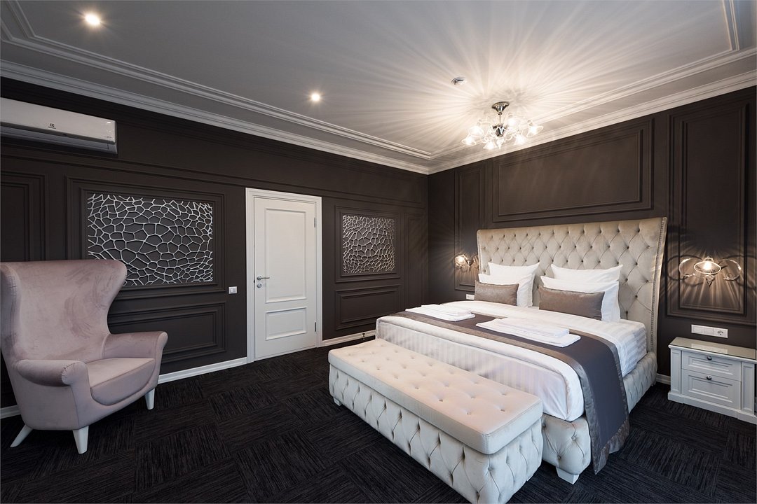 Комфортабельный номер для ценителей удобства и уникального дизайна. Номера категории Делюкс оснащены двуспальной кроватью. Так же для создания комфорта в номере присутствуют кресла, тумбы, стол, большой телевизор с плоским экраном, кондиционер, зеркало. В ванной комнате есть набор, полотенец, фен, набор туалетных принадлежностей а также удобная ванна или душ.Услуги и удобства