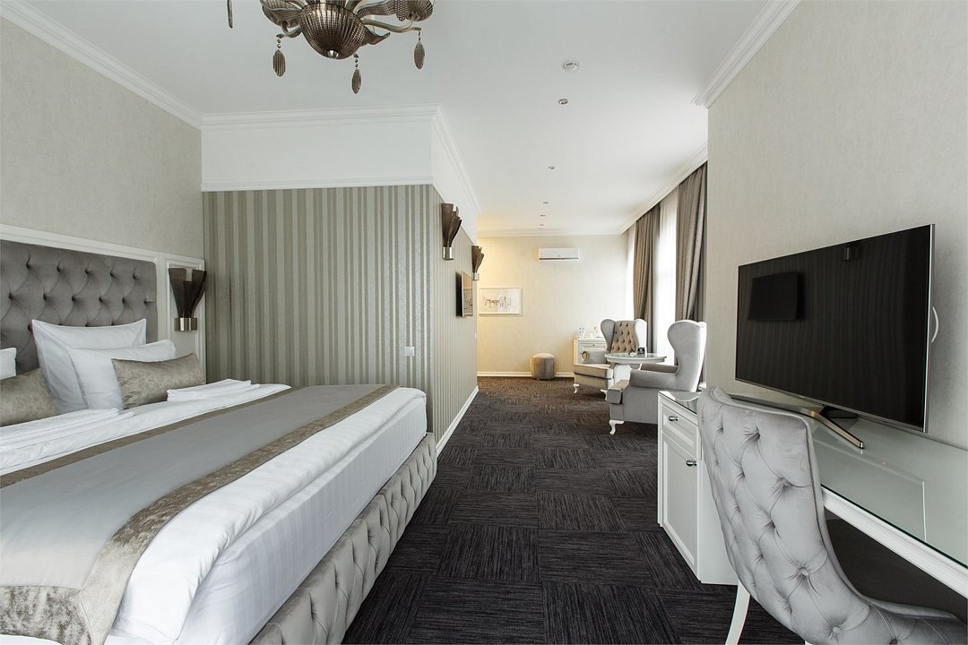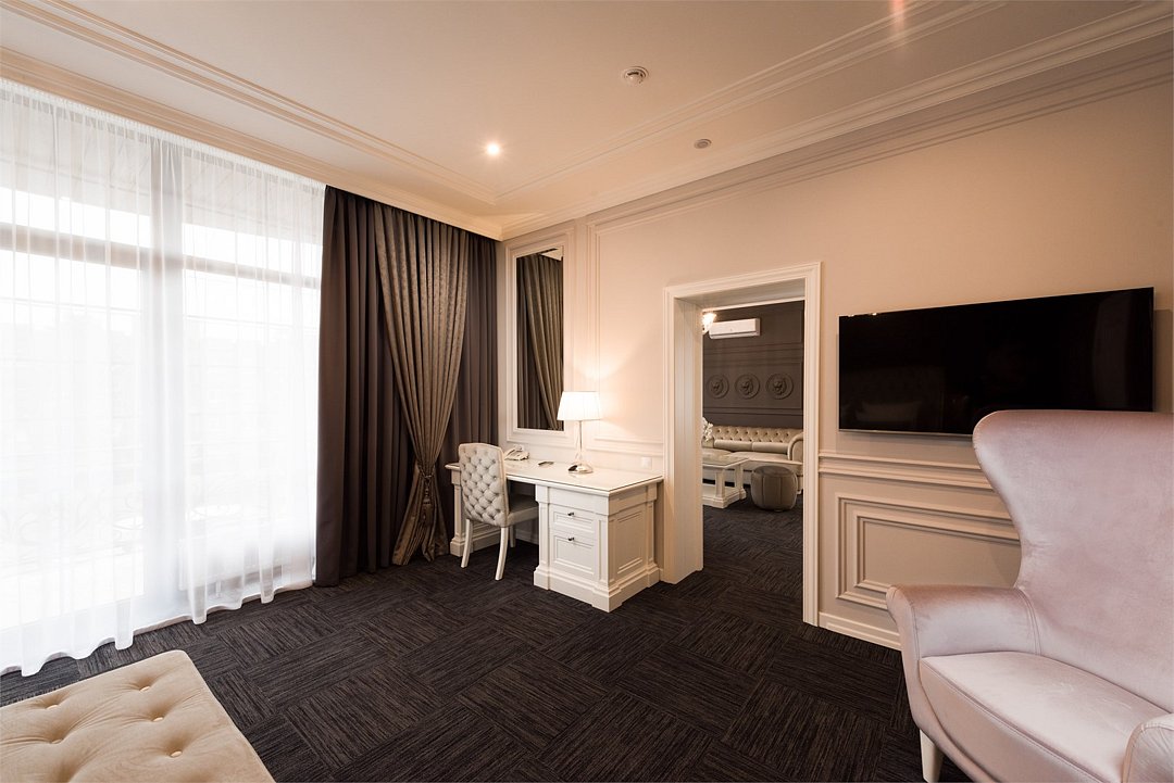 телевизор, два телевизора, кабельное телевидение, Wi-Fi, интернет, телефон, система климат-контроля, светильник, настольные лампы, фен, будильник, электронные замки, ванная комната, ванна или душевая кабина, ванная с джакузи, дополнительный санузел, биде, банные принадлежности, халаты, тапочки, гигиенические средства, косметические средства, кровать «King size», диван, кресла, тумбы, стулья, шкаф для одежды, вешалки, журнальный столик, письменный стол, зеркало, пуфики, эксклюзивная мебель, две комнаты, обслуживание номеров, сейф, чайник, мягкая мебель, питьевая вода, ковровое покрытие, отопление, вид на город, кресло, раздельный санузел, высокие потолки, кофейный столик, стул, стол, тумба, туалетные средства, туалет, сплит-система, цифровое тв, внутренний телефон, телевизор с плоским экраном, мини-холодильник, москитная сеткаВ номере