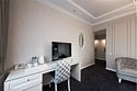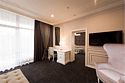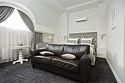Роскошный комфортабельный номер, с неповторимым дизайном. В этом номере есть всё необходимое для того, что бы Ваше проживание в нём стало максимально удобным. Спальная комната оснащена большой, комфортной кроватью, прикроватной тумбой, креслом, зеркалом, столом, а так же кондиционером. В гостинной комнате Вы сможете удобно расположиться на комфортном диване за просмотром телепередач на большом плоском телевизоре. Так же для удобства присутствуют журнальный стол, стул, кресла, настольная лампа и кондиционер. В ванной комнате Вы сможете воспользоваться комфортабельной ванной с джакузи, набором полотенец, феном и набором туалетных принадлежностей.Услуги и удобства