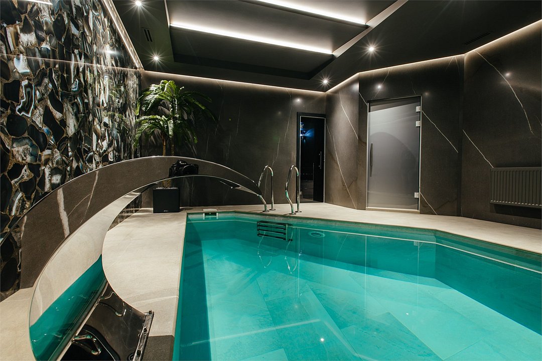 - С бассейном и сауной