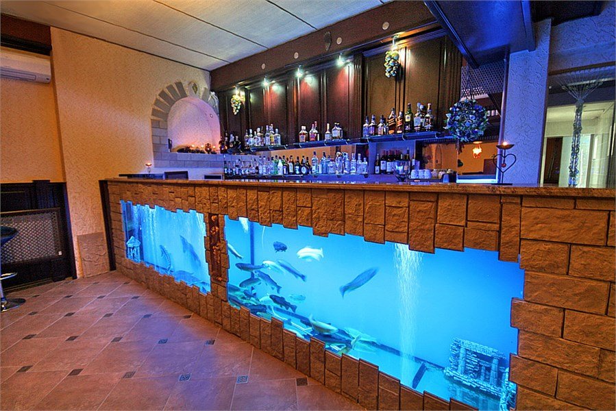 Вкус настоящей кавказской и европейской кухни от одной из лучших команд рестораторов Кубани. “FISH” – первый ресторан в Кpacнодape в аквадизайнерском исполнении с живой рыбой в огромных аквариумах. Объемные, оформленные декоративными предметами и яркой подсветкой, аквариумы разделяют просторный зал ресторана (зал на 120 чел.) на отдельные функциональные зоны. Огромный стеклянные емкости со стайкой радужной форели, а также рыбой семейства осетровых, представлены контактной барной стойкой.