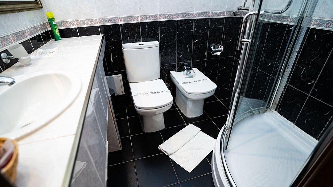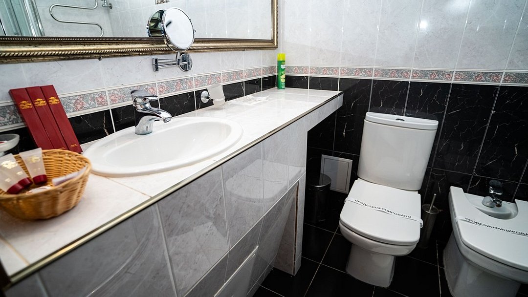 Однокомнатный двухместный номер 30 м2 с двумя кроватями. В комнате есть плазменный телевизор, телефон, сплит система, холодильник, плательный шкаф. В ванной комнате - душевая кабина с гидромассажем, фен и все необходимые принадлежности.Услуги и удобства