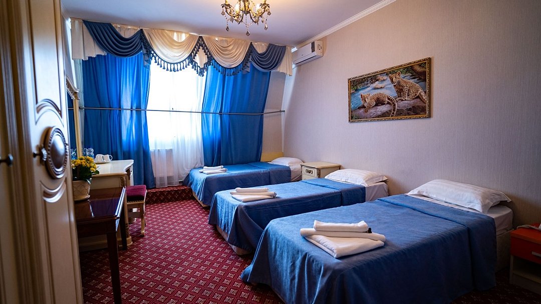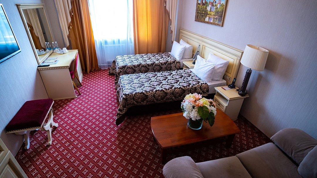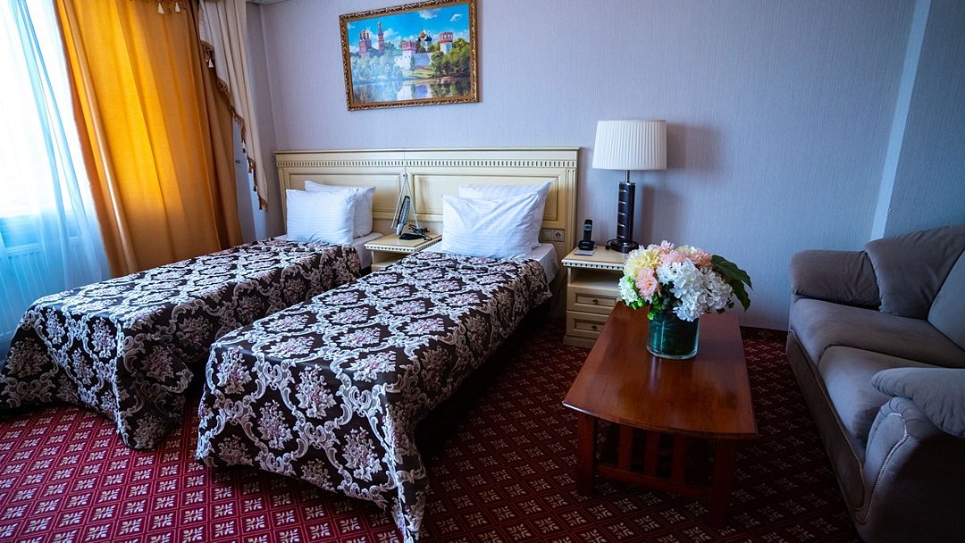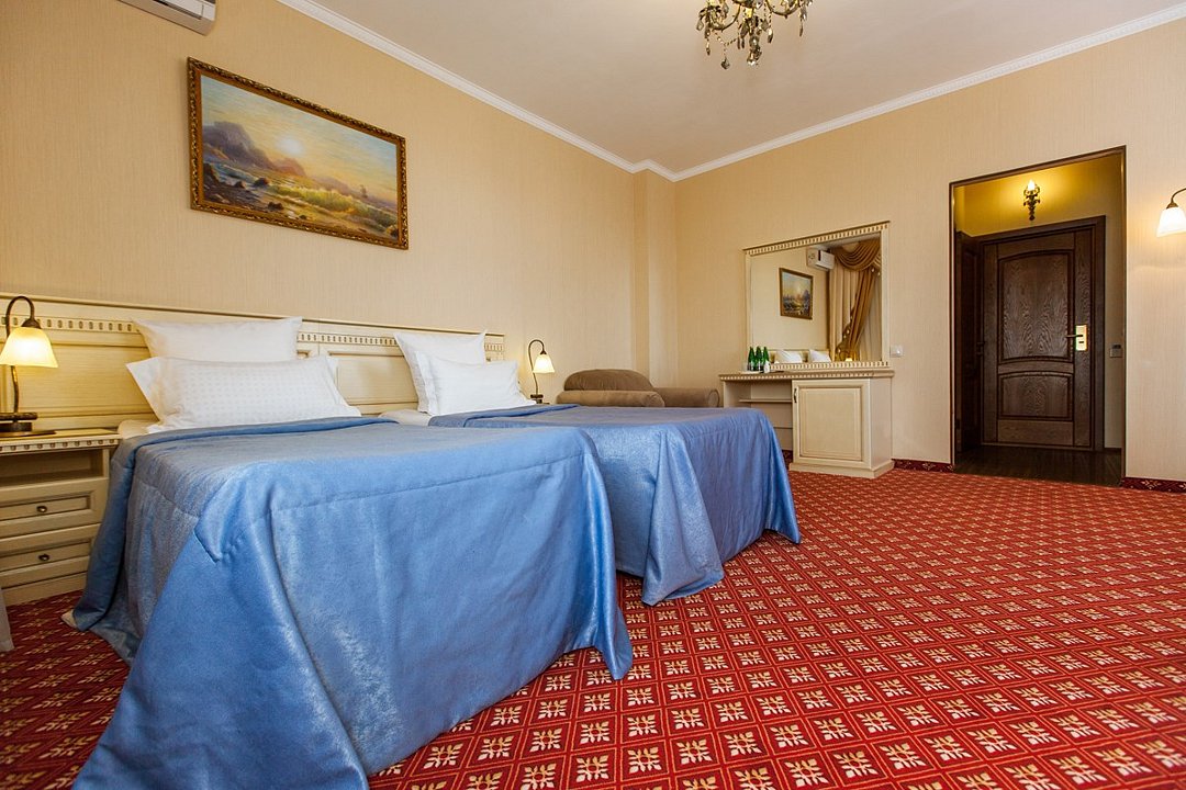 Однокомнатный номер площадью 28-30 кв.м с двумя отдельными кроватями . В номере: две полутороспальные кровати и возможно размещение еще двух односпальных кроватей для доп.мест, стол, стулья, , прикроватные тумбочки, туалетный столик, гардероб, сейф, кондиционер, индивидуальная система кондиционирования, центральное отопление, телефон, зеркало, тумбочка, журнальный столик, индивидуальные шкафчики, индивидуальные светильники, индивидуальные розетки, телевизор, Wi-Fi, посуда, холодильник, бутилированная вода. В ванной: туалет, раковина, биде, душевая кабина, средства личной гигиены, тапочки, фен, зеркало, набор полотенец.Услуги и удобства