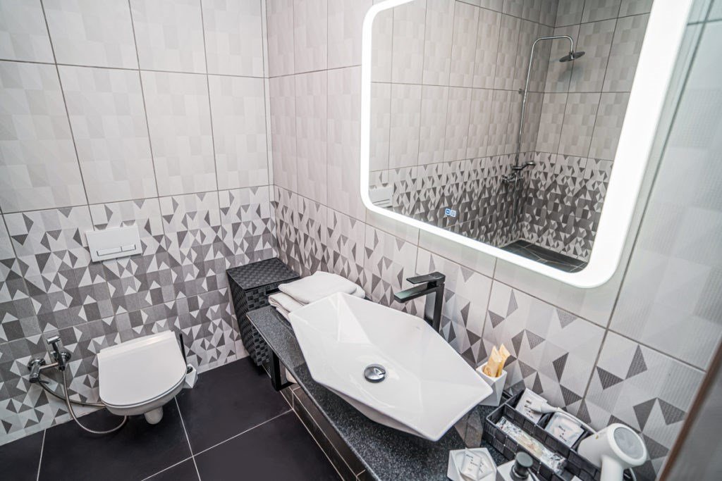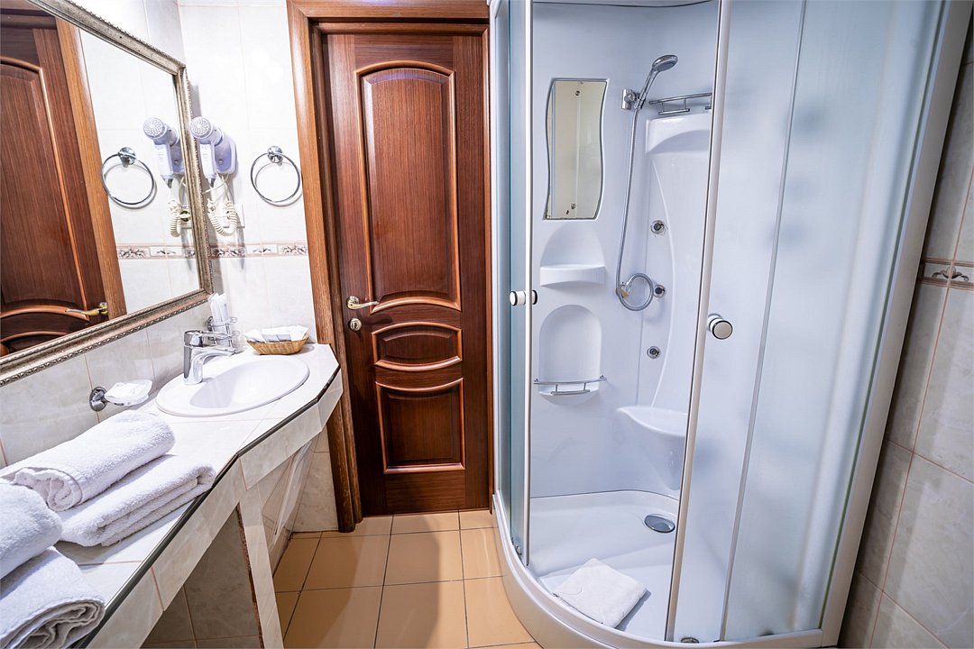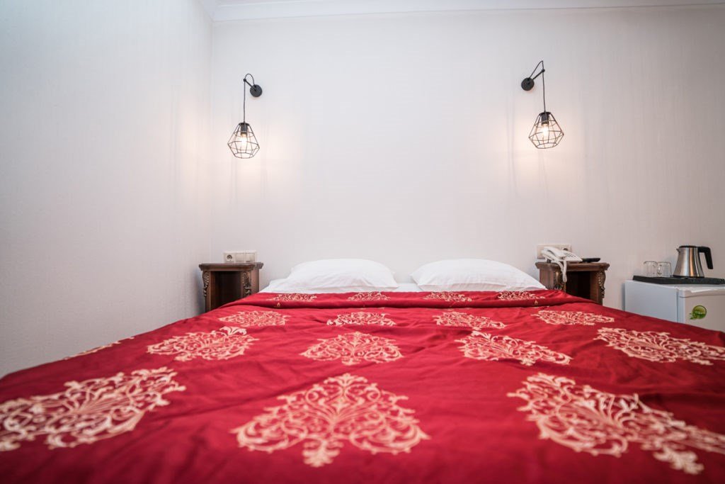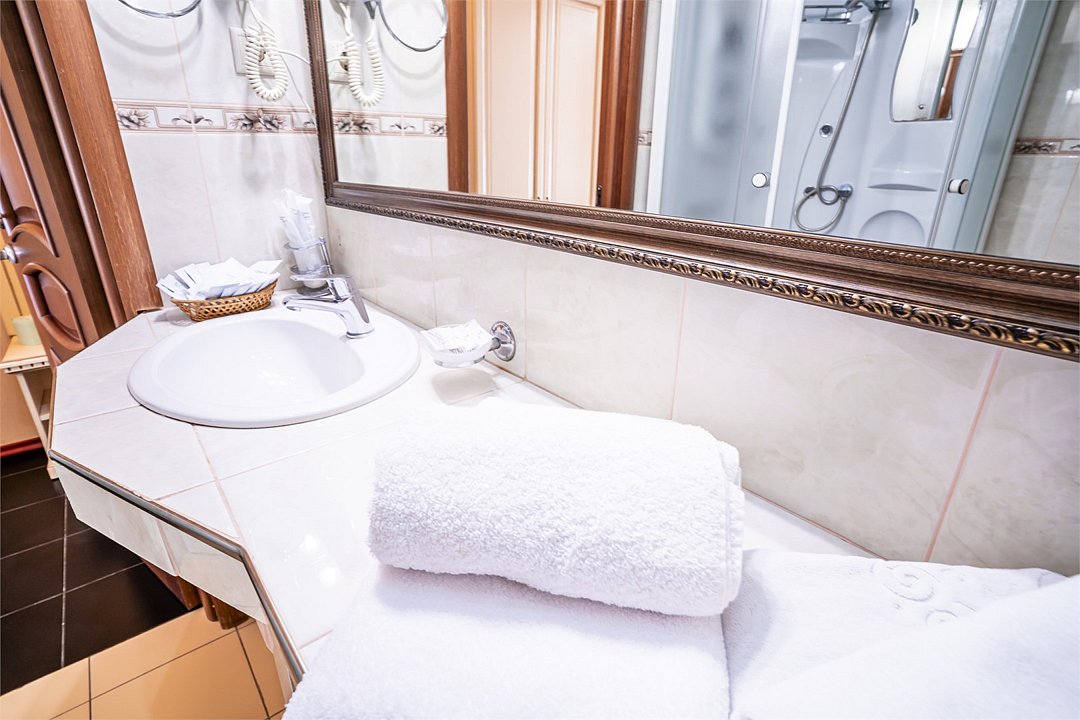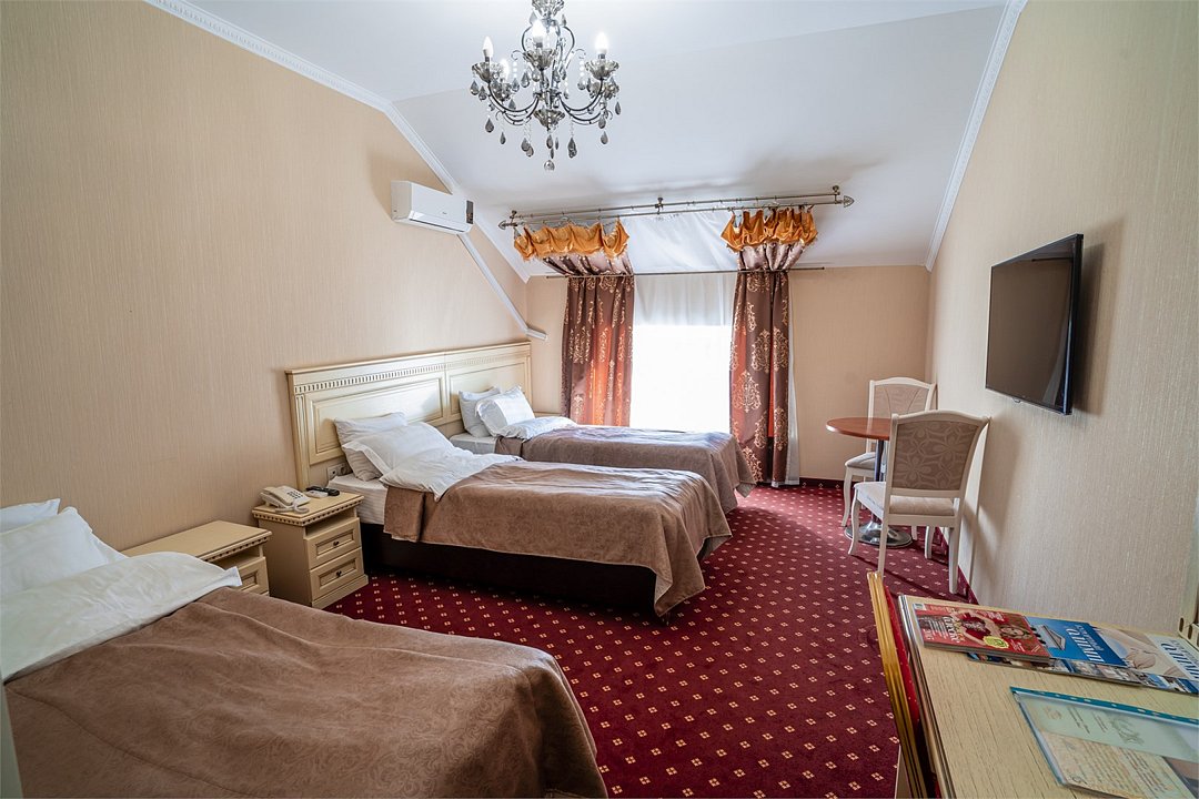 телевизор, спутниковое телевидение, Wi-Fi, холодильник, настольные лампы, фен, электронные замки, ванная комната, душевая кабина, санузел, биде, банные полотенца, тапочки, гигиенические средства, косметические средства, две односпальные или большая двуспальная кровать, ортопедический матрас, стулья, шкаф для одежды, вешалки, багажная тумба, зеркало, письменные принадлежности, свежая пресса, обслуживание номеров, информационная карта, меню, сейф, минеральная вода, унитаз, раковина, косметическое зеркало, питьевая вода, ковровое покрытие, отопление, вид на город, кулер на этаже, вид во двор, стаканы, стол, туалетные средства, туалет, сплит-системаВ номере