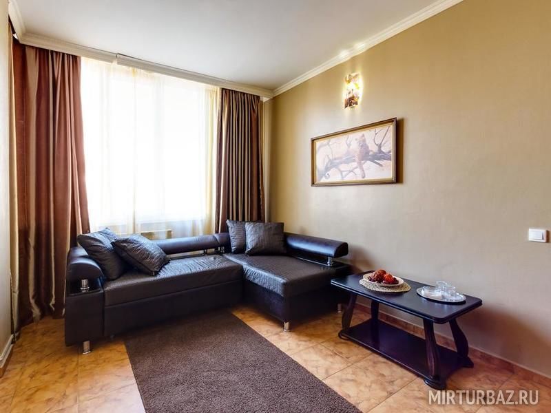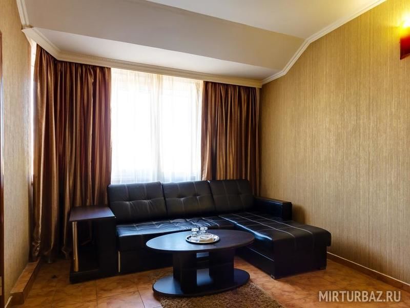 В «люксах» есть дополнительное спальное место на раскладном диване, зона отдыха с мягкими креслами, журнальным столиком, где можно вести переговоры, деловые встречи. Все объекты в отеле доступны для предварительного бронирования.