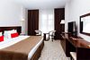 Одноместное/двухместное размещение – может быть с раздельными кроватями или с двуспальной кроватью по желанию гостя. Общая площадь номера 26 кв.м. Окна и двери в номерах с шумоизоляцией. Электронная система доступа в номер. В номере: Ж/К телевизор Телефон с возможностью выхода на городскую линию Беспроводной высокоскоростной доступ в Интернет (Wi – Fi) Одна двуспальная кровать 180 х 200 см или двумя односпальными кроватями 90*200 см. с ортопедическим матрацем, прикроватные тумбочки Письменный стол с зеркалом Сейф Диван, журнальный столик Мини-бар Кондиционер Ванная комната: Ванна Фен Увеличительное зеркало Набор средств личной гигиены Набор полотенец ТапочкиУслуги и удобства