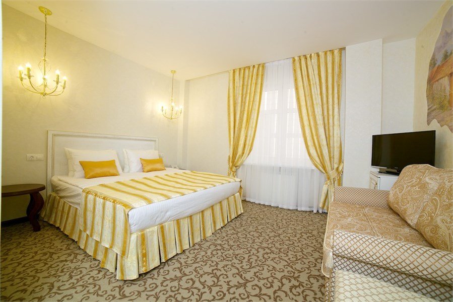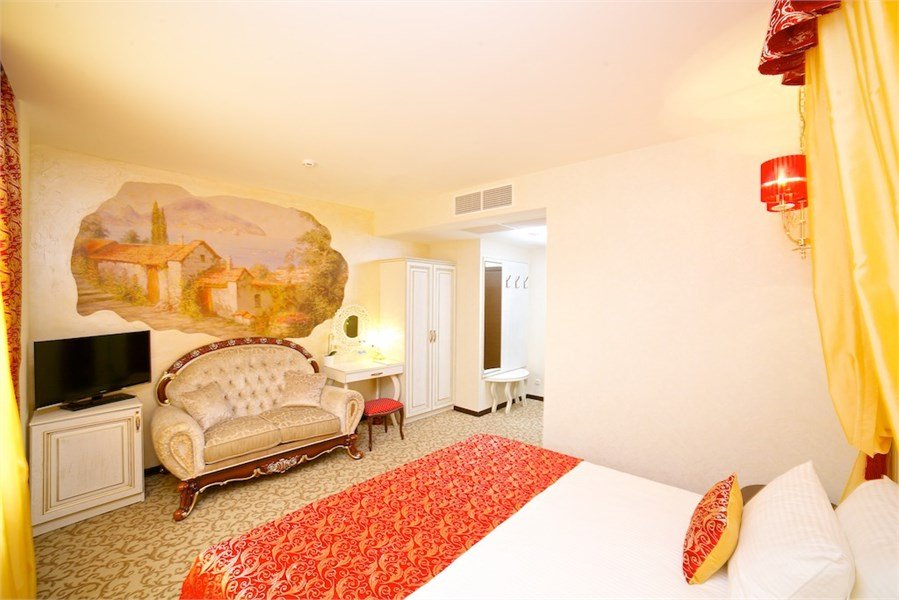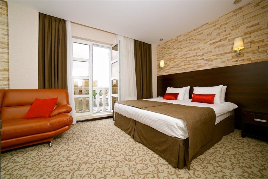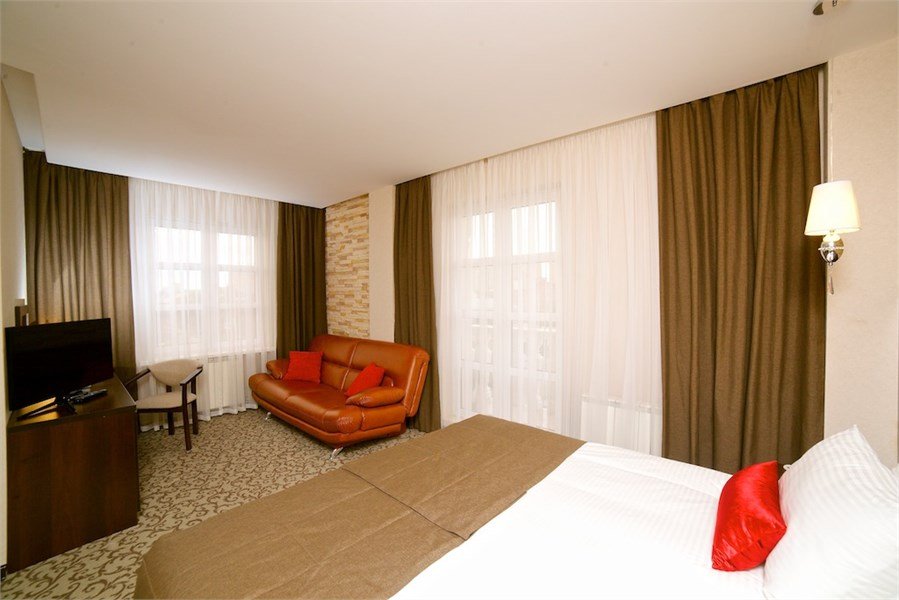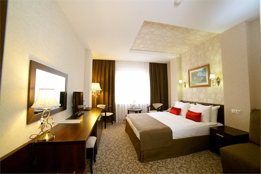 Общая площадь номера в отеле 26 кв.м. Номер в отеле Краснодара имеет двуспальную кровать, но имеется возможность одноместного или двухместного размещения. Окна и двери в номерах отеля с шумоизоляцией. Электронная система доступа в номер. В номере: Ж/К телевизор Телефон с возможностью выхода на городскую линию Беспроводной высокоскоростной доступ в Интернет (Wi – Fi) Одна двуспальная кровать 180 х 200 см с ортопедическим матрацем, прикроватные тумбочки Письменный стол с зеркалом Мягкий диван Сейф Мини-бар Кондиционер Ванная комната: Ванна Фен Увеличительное зеркало Набор средств личной гигиены Набор полотенец ТапочкиУслуги и удобства
