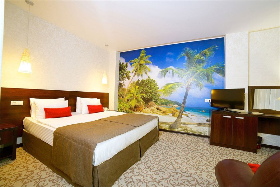Одноместное/двухместное размещение — с двуспальной кроватью. Общая площадь номера 36 кв.м. Окна и двери в номерах с шумоизоляцией. Электронная система доступа в номер. В номере: Ж/К телевизор Телефон с возможностью выхода на городскую линию Беспроводной высокоскоростной доступ в Интернет (Wi – Fi) Одна двуспальная кровать 180 х 200 см или двумя односпальными кроватями 90*200 см. с ортопедическим матрацем, прикроватные тумбочки Письменный стол с зеркалом Сейф Кресло, журнальный столик Мини-бар Кондиционер Ванная комната: Халат Ванна Биде Фен Увеличительное зеркало Набор средств личной гигиены Набор полотенец ТапочкиУслуги и удобства