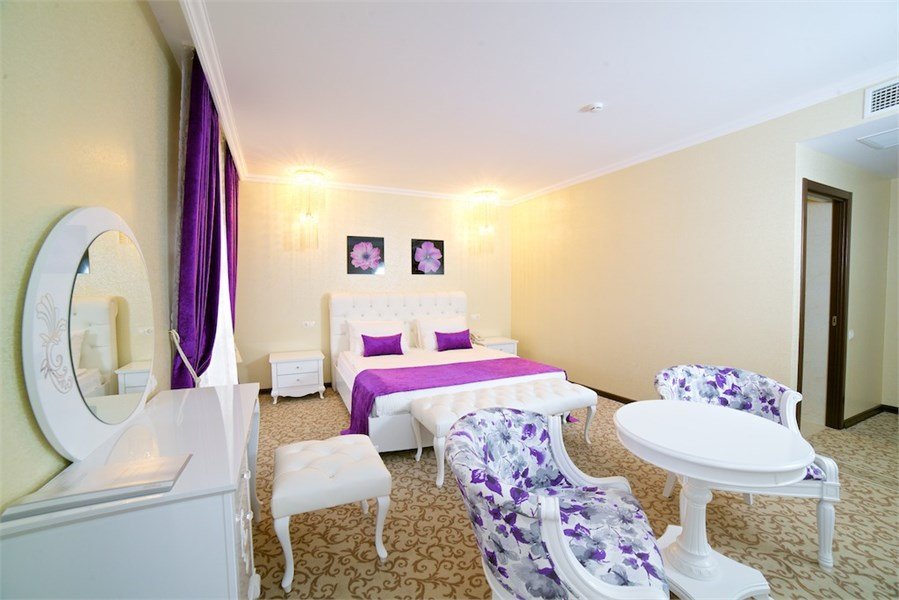 Возможно одноместное и двухместное размещение с двуспальной кроватью. Общая площадь номера 65 кв.м. Окна и двери в номерах с шумоизоляцией. Электронная система доступа в номер. В номере: Ж/К телевизор Телефон с возможностью выхода на городскую линию Беспроводной высокоскоростной доступ в Интернет (Wi – Fi) Одна двуспальная кровать 180 х 200 см с ортопедическим матрацем, прикроватные тумбочки Удобная рабочая зона Мягкая кожаная мебель и журнальный столик Сейф Мини-бар Кондиционер Ванная комната: Джакузи Биде Фен Увеличительное зеркало Халат Набор средств личной гигиены Набор полотенец ТапочкиУслуги и удобства