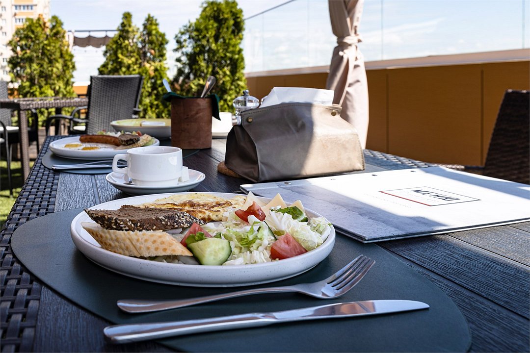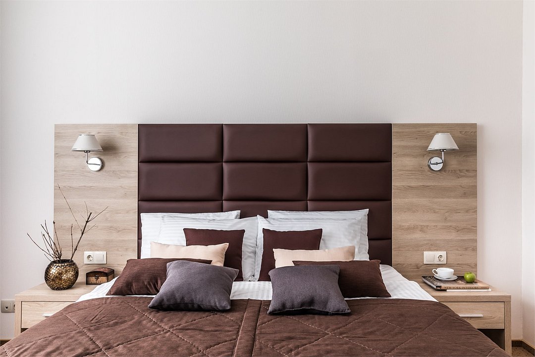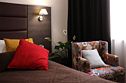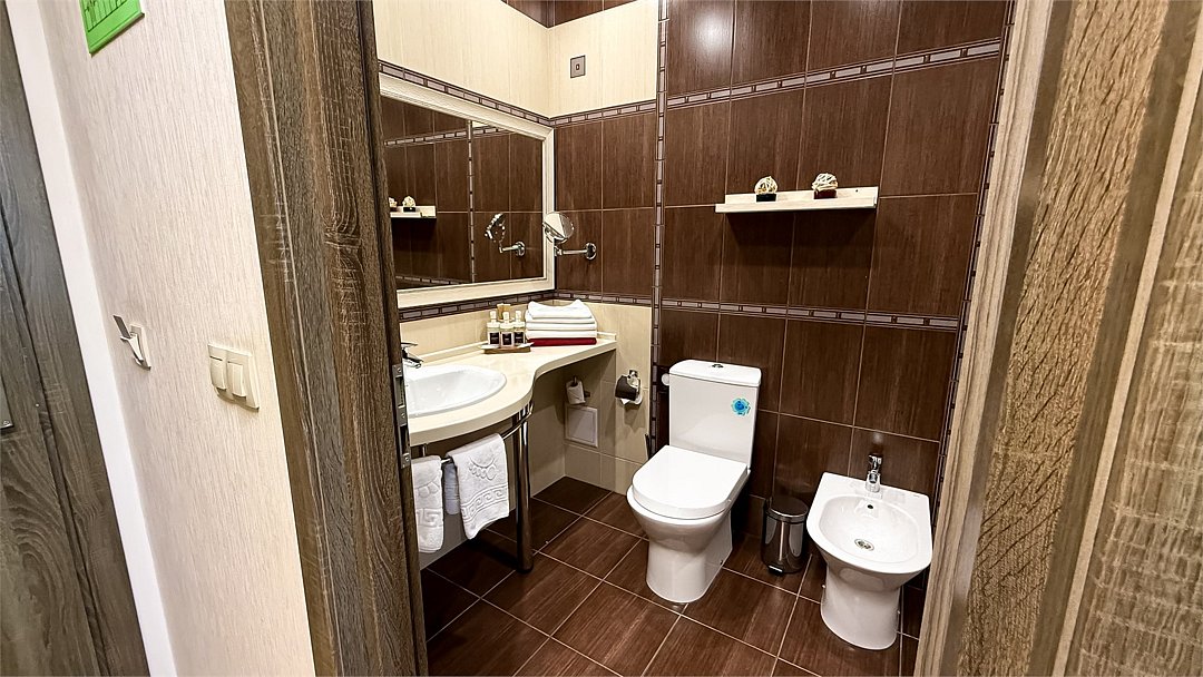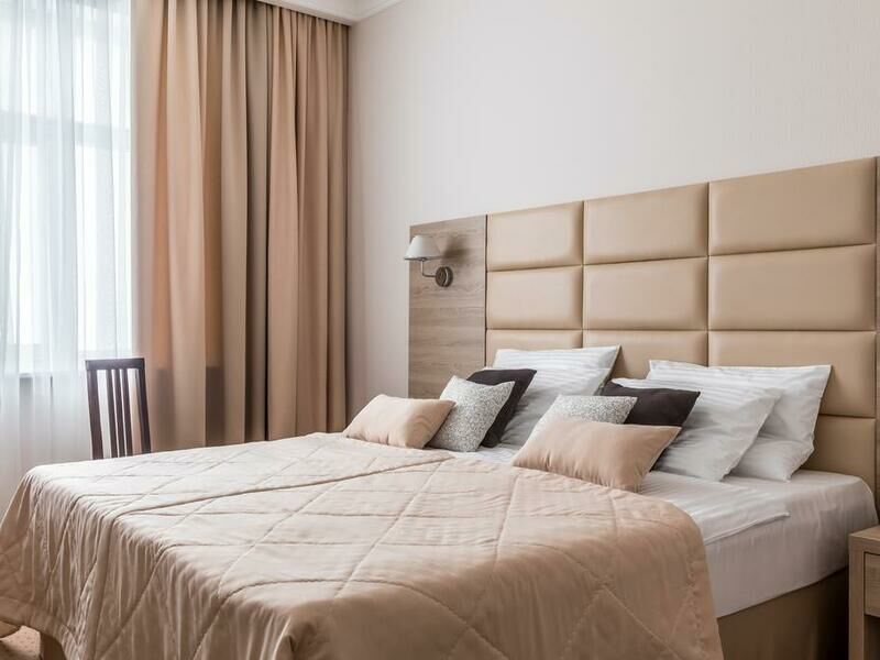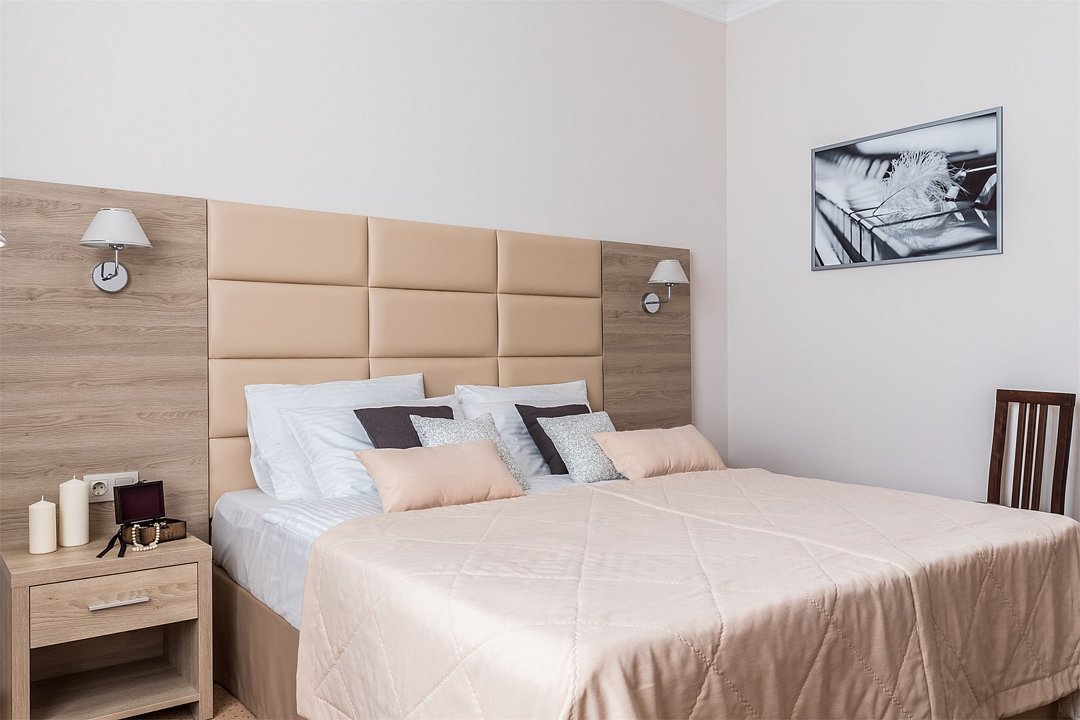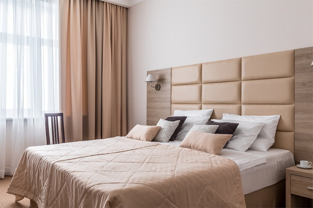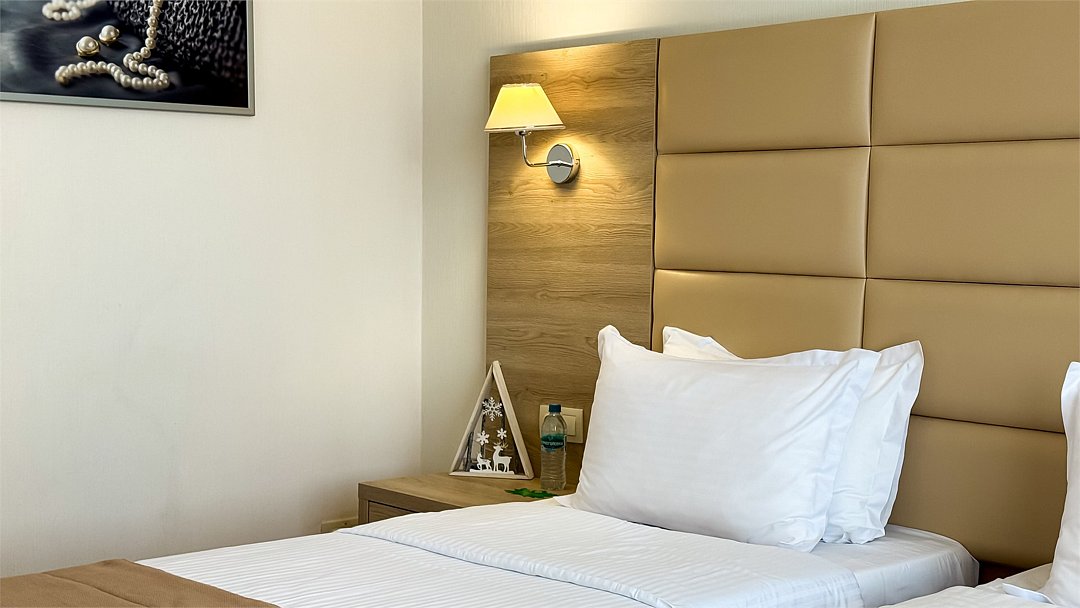 Современное 5-ти этажное здание отеля, оснащенное лифтами, предлагает гостям 22 двухместных номера категории Улучшенный и Комфорт. В стильно оформленных номерах есть все необходимое – санузел с ванной или душем, телевизор, кондиционер, холодильник, односпальные или двуспальные кровати.