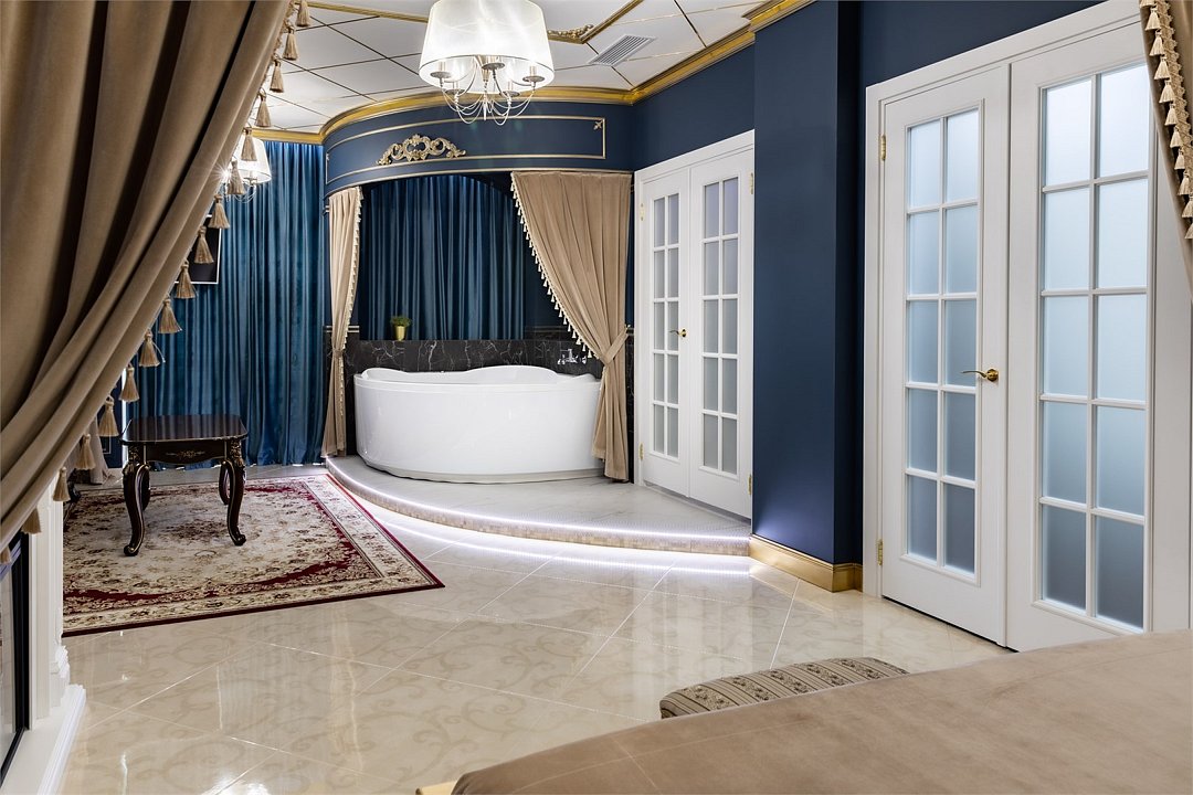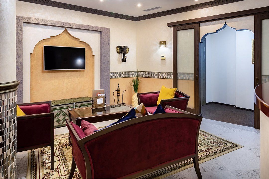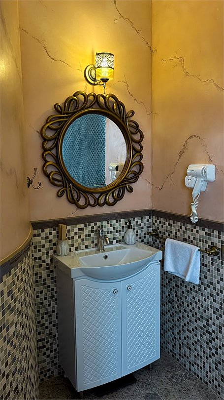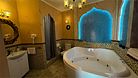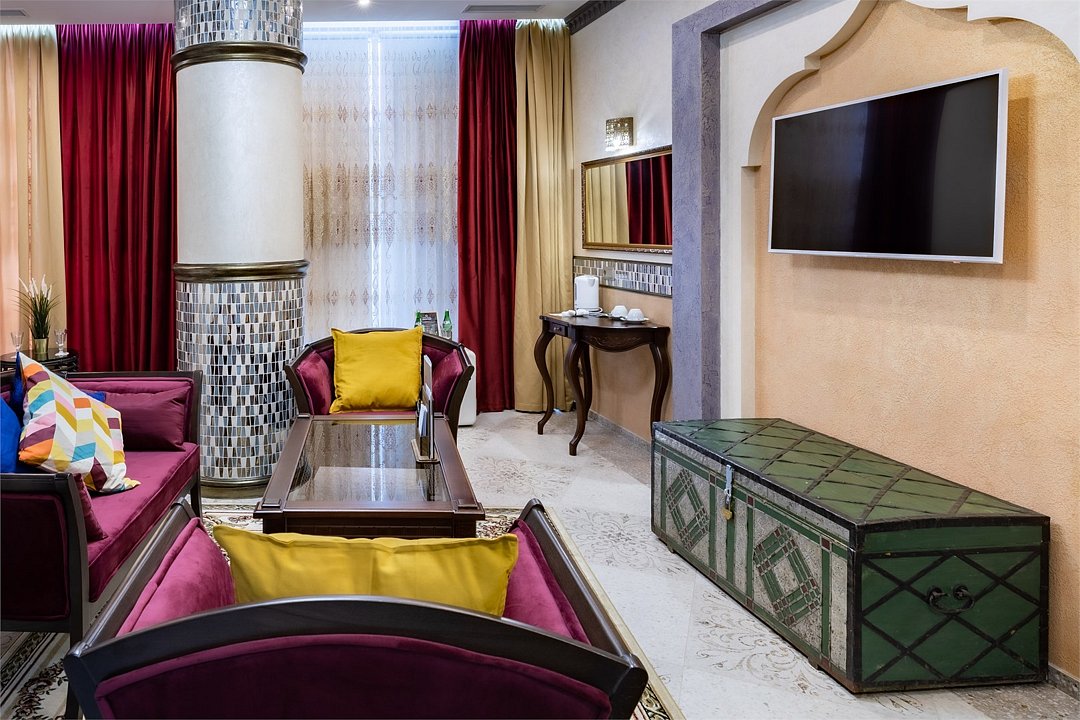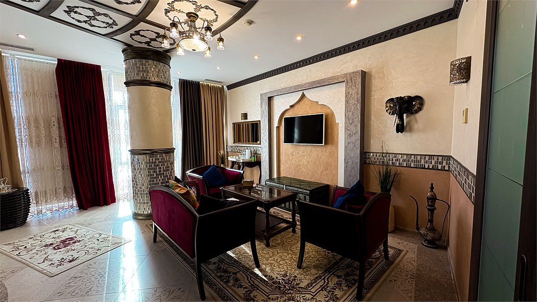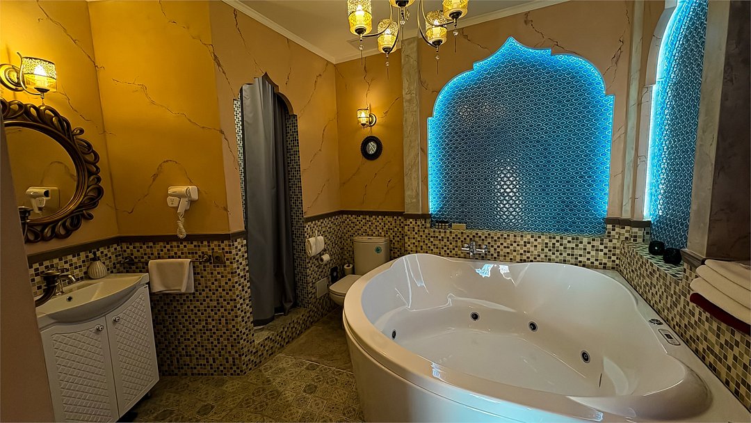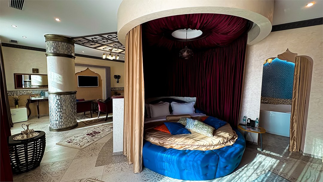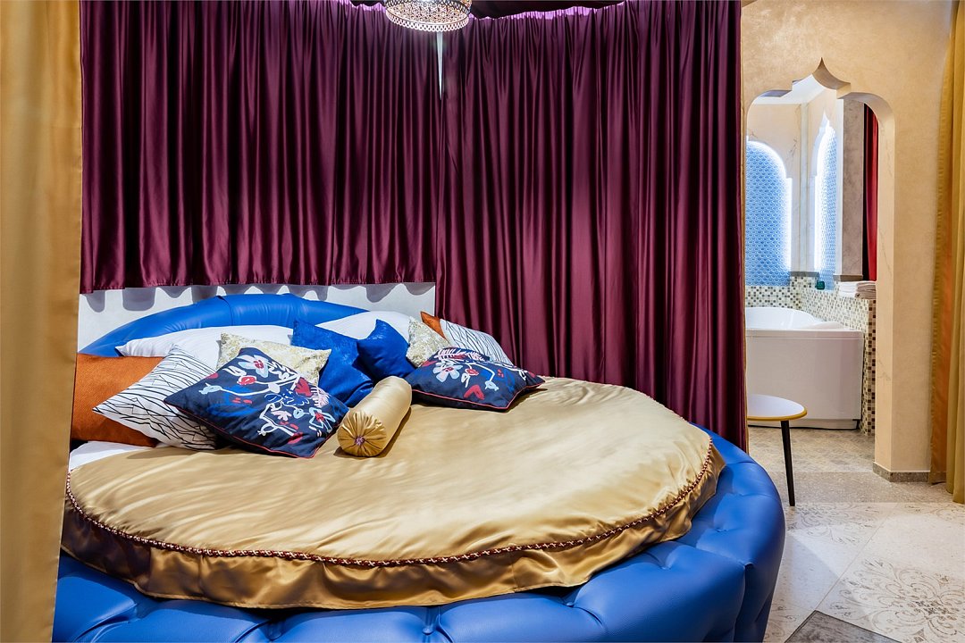 Добро пожаловать в наш уникальный номер в стиле Марракеш — оазис роскоши и восточного теплоты, где каждый элемент интерьера словно рассказывает свою собственную историю. Когда вы переступите порог, вас окружит атмосфера сказочного Марокко: яркие цвета, изысканные узоры и уютные текстуры. Здесь вы почувствуете настоящее волшебство восточной культуры и традиций. Наша комната оформлена с вниманием к каждой детали — от ручной работы мозаики до богатого текстиля, что создает идеальное пространство для отдыха и вдохновения. Представьте себе утро, когда солнечные лучи пробиваются сквозь узорчатые занавески, наполняя номер мягким светом. Вы сможете насладиться чашечкой ароматного чая с видом на город, создавая неповторимые моменты наслаждения. В вашем распоряжении — все удобства для комфортного пребывания: просторная круглая кровать с роскошным постельным бельем, чарующая ванная комната, с голубой подсветкой зона джакузи, высококачественные туалетные принадлежности, а также Wi-Fi и smart TV для обеспечения вашего досуга. Отдохните от суеты и стресса в нашем номере в стиле Марракеш. Создайте незабываемые воспоминания в окружении восточной экзотики. Забронируйте номер уже сегодня и окунитесь в мир комфорта и стиля, который запомнится вам надолго!Услуги и удобства