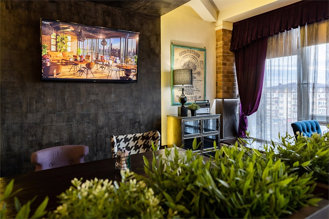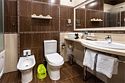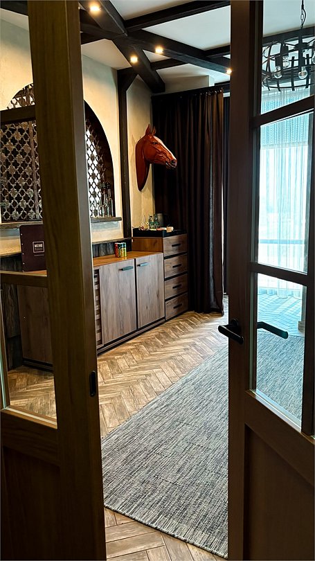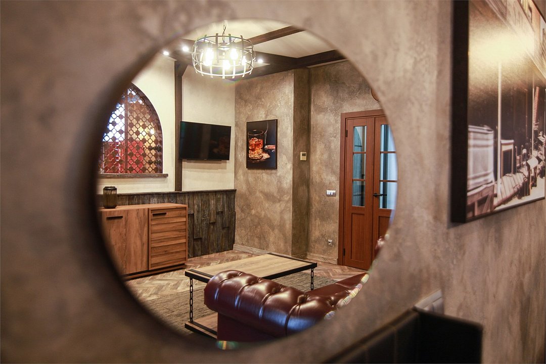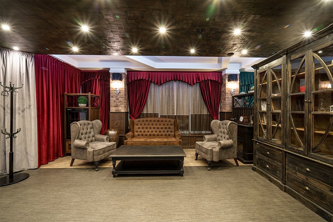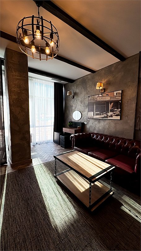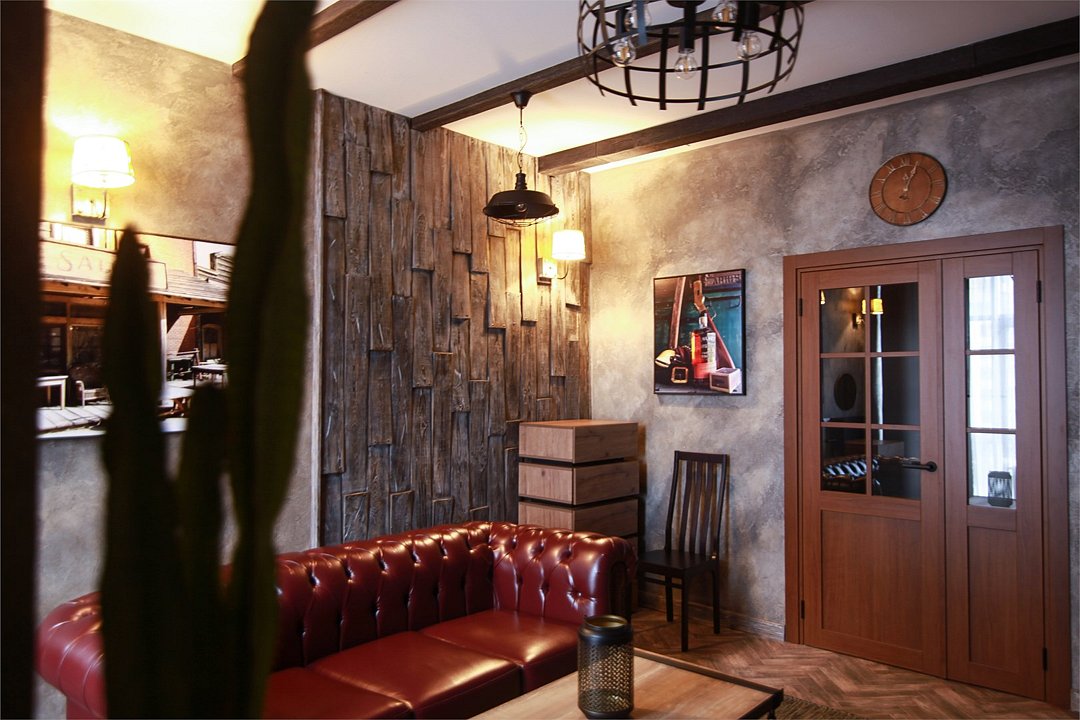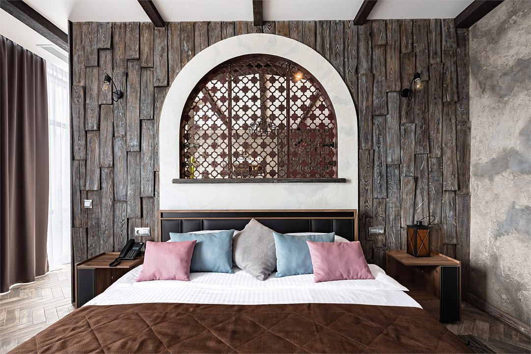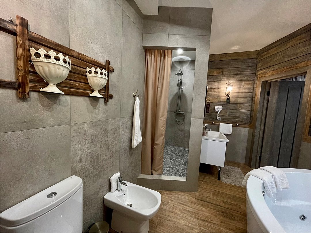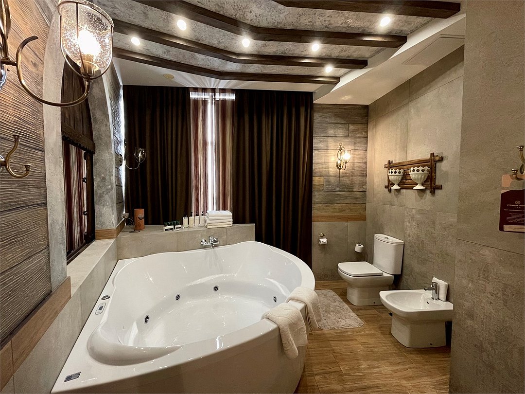 Номер в Юго-западном стиле «Вестерн» включает в себя романтику захватывающих приключений и непредсказуемость развития событий, присущее Дикому-Западу XIX века. Особенностью в оформлении номера является сочетание необработанного камня и дерева. Отделка стен гармонично сливается воедино с массивными предметами интерьера: широкими балками раскинутыми по потолку, каменным камином, массивной колонной. Уверенность в принятых решениях формирует крепкая и стильная без излишеств мебель номера: символизирующие фундаментальность низкие столы, кожаный багровый диван, туалетный столик, консоль, прикроватные тумбы. Интерьер разбавляют четко подобранные детали : подвесное зеркало на кожаном ремне, 1,5 метровый кактус, декоративные подсвечники с надписями и люстры из металла. Джакузи, TV и Wi-Fi не единожды вам напомнят, что время шагнуло с отрывом в сотни лет вперед. В этом номере вы ощутите себя в роли ловкого ковбоя или же обворожительной его подружкой, надев шляпу с широкими полями.Услуги и удобства