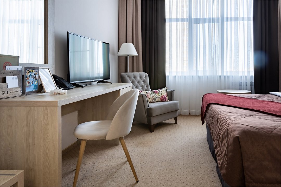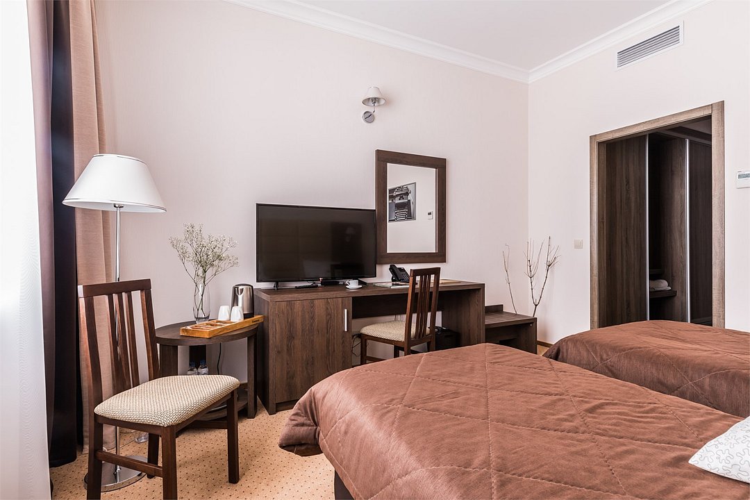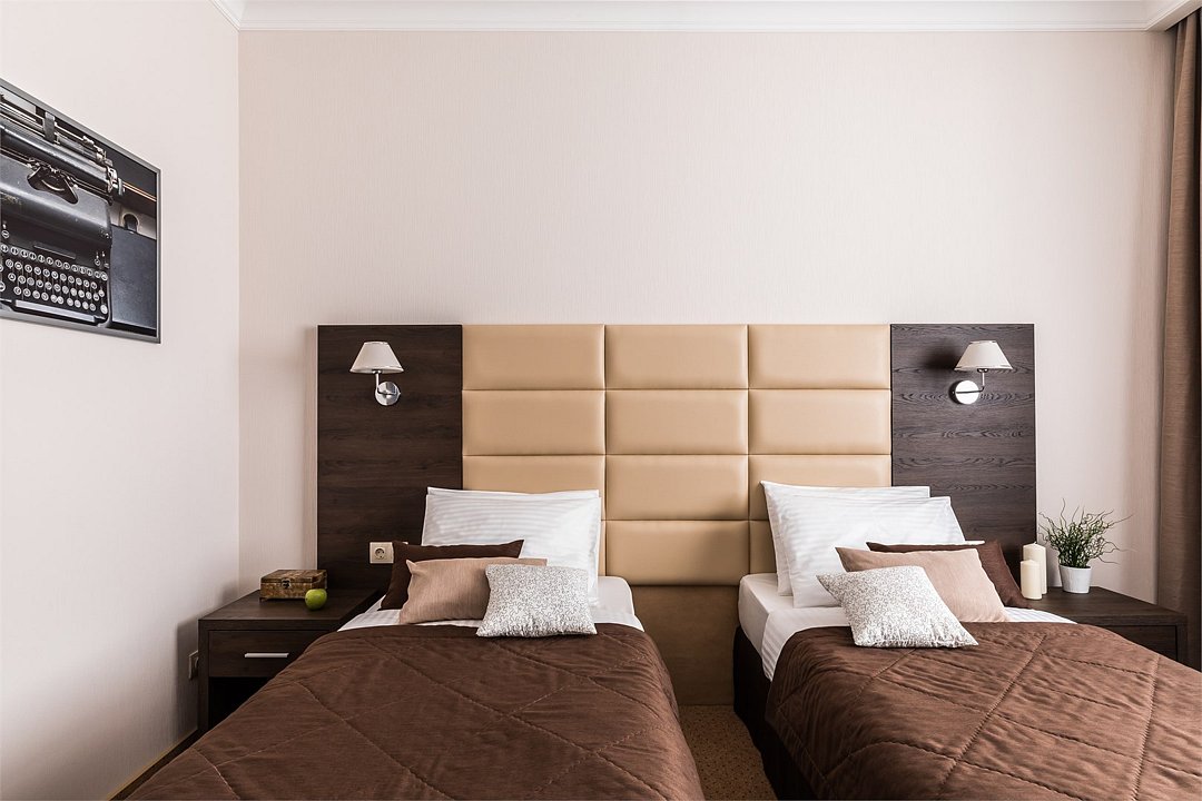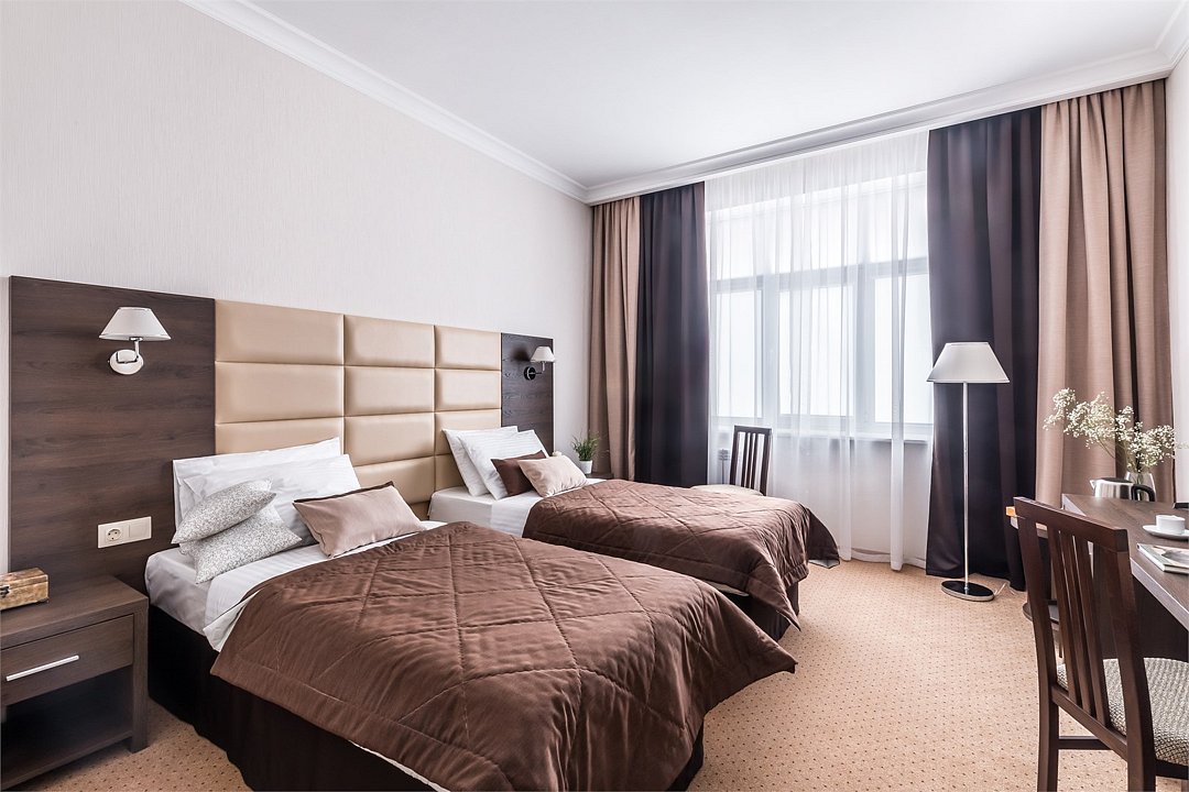 Номер «Комфорт» с двумя односпальными кроватями отвечает всем современным требованиям комфорта. В номере есть всё необходимое для работы: WI-FI, плазменный TV, телефон и рабочее место. Это позволит Вам быть всегда на связи и заняться важными делами не выходя из номера. А для отдыха и расслабления после тяжелого дня, ванная комната оборудована биде, большим туалетным столом, гостиничной парфюмерией на каждого гостя и феном.Услуги и удобства