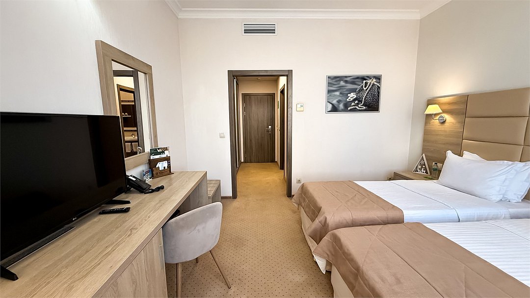 Wi-Fi, телефон, система климат-контроля, фен, система безопасности, электронные замки, ванна, биде, банные полотенца, косметические средства, две односпальные кровати, тумбы, стулья, шкаф для одежды, вешалки, журнальный столик, письменный стол, багажная тумба, зеркало, чайный набор, сейф, унитаз, косметическое зеркало, питьевая вода, ковровое покрытие, вид на город, центральное кондиционирование, стаканы, туалетный столик, туалетный столик, туалет, цифровое тв, внутренний телефон, телевизор с плоским экраном, мини-холодильник, москитная сетка, шкаф-купе, гостиничная парфюмерияВ гостиничном номере