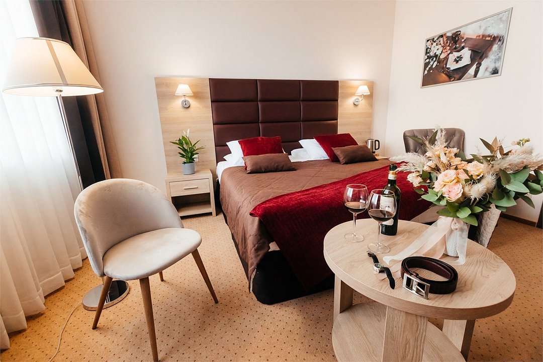 Короткий отпуск с друзьямиОтдыхКомфортно, вежливый персонал, всё продуманно до мелочей, приятная атмосфера, вкусный завтрак. В номере очень чисто и уютно. Приятные презенты. Рекомендую поужинать в ресторане. !!!!!!!!!!!!!!!!!!!!!!!!