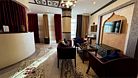 Wi-Fi, светильник, фен, система безопасности, электронные замки, утюг, ванная с джакузи, халаты, банные полотенца, тапочки, косметические средства, кровать «King size», гладильная доска, диван, кресла, журнальный столик, зеркало, комод, ковер, эксклюзивная мебель, чайный набор, сейф, минеральная вода, чайник, унитаз, раковина, косметическое зеркало, душ, вид на город, стаканы, кофейный столик, туалетный столик, сплит-система, внутренний телефон, телевизор с плоским экраном, мини-холодильник, москитная сетка, шкаф-купе, гостиничная парфюмерия, номер для некурящихВ гостиничном номере