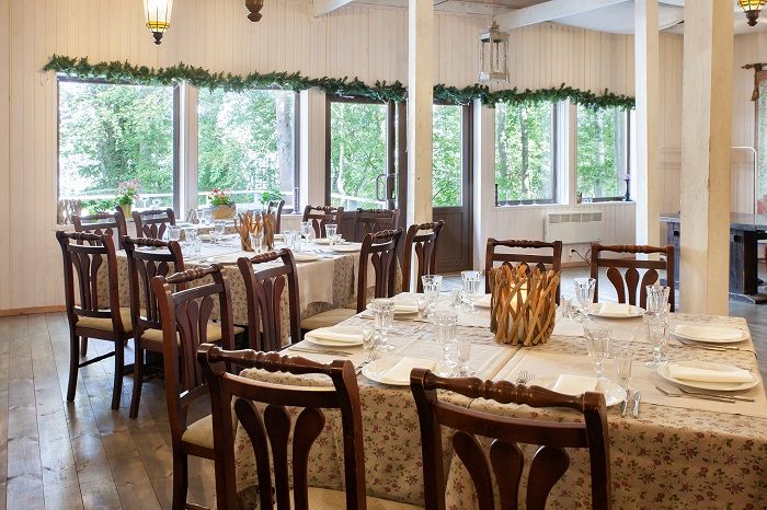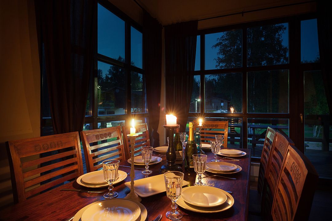 - для небольших свадеб, помимо ресторана, также предлагается организация праздничного стола в гостиной или на террасе одного из коттеджей (до 20 гостей);