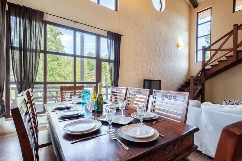 - в 50 метровой гостиной широкие от самого пола панорамные окна позволят Вам насладиться окружающим пейзажем;