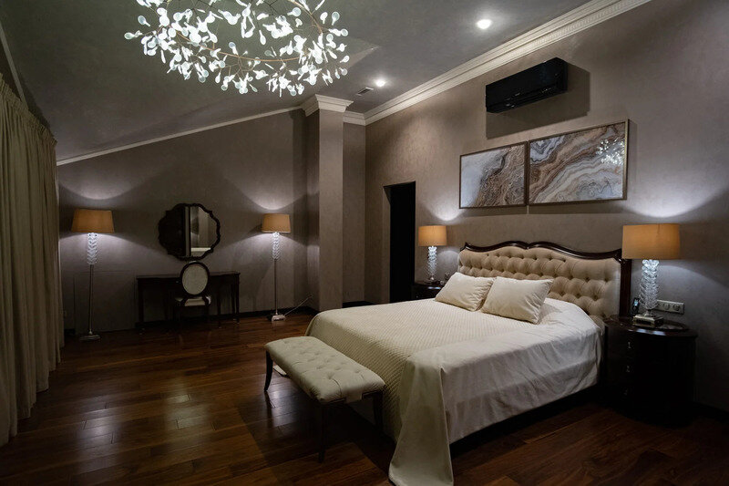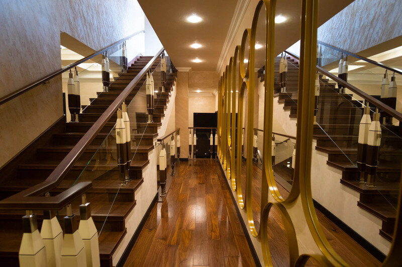 Вы можете арендовать как малый дворец, так и снять весь комплекс и получить доступ ко всем его удобствам, включая 12 роскошных спален, 12 санузлов, 2 банкетных зала, 2 караоке-зала, русскую и турецкую бани, крытую и открытую бассейны, ресторан, боулинг, кальян-бар, кинотеатр, барбекю и даже вертолетную площадку.
