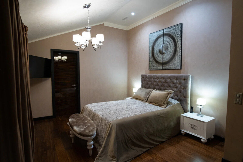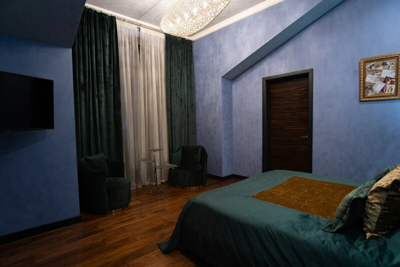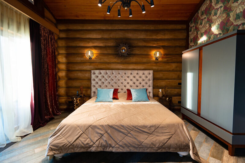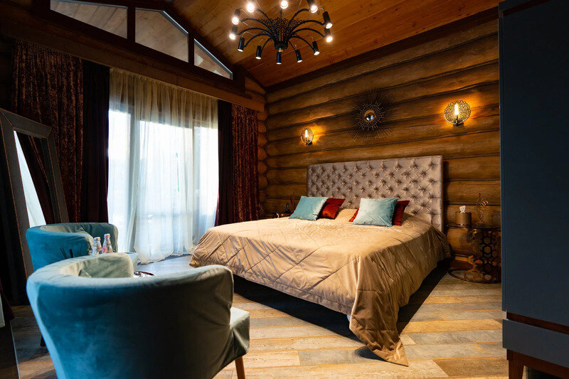В роскошной спальне «Мифическая» можно расслабиться и отдохнуть после парения или грандиозной вечеринки.