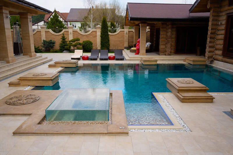 Глубоководный бассейн — визитная карточка банного комплекса. В любое время года прогреться после купания в бассейне поможет горячее джакузи с массажем под открытым небом.
