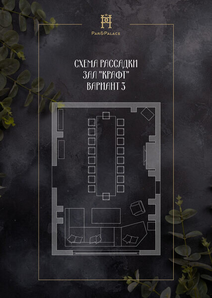 Банкетный зал «Крафт» поражает своей атмосферой и роскошью. Зал рассчитан на 15-20 человек и оборудован профессиональной системой караоке AST.