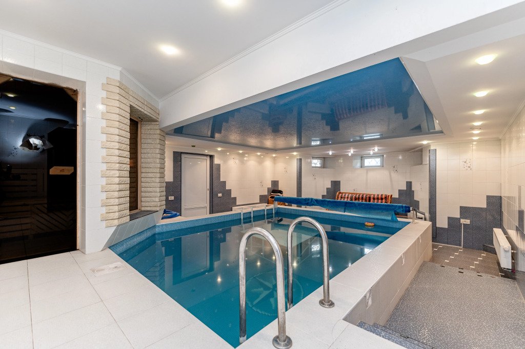 Для путешественников на машине организована парковка. Также для гостей в коттедже: спа-центр. Здесь будем баловать себя водными процедурами: есть бассейн.