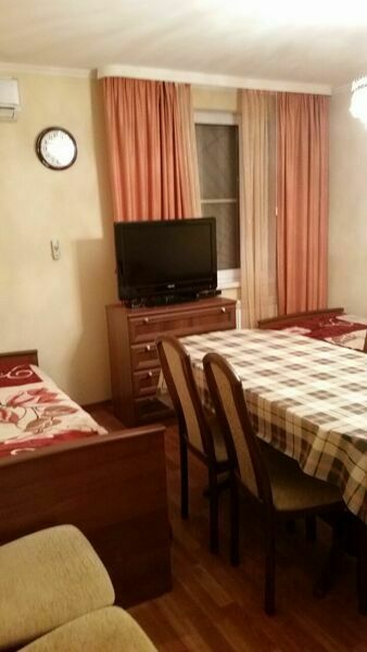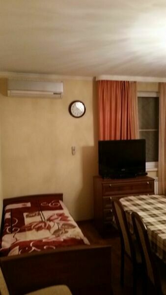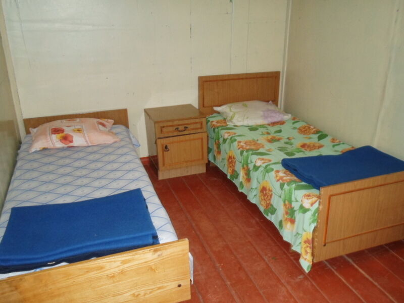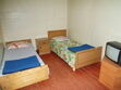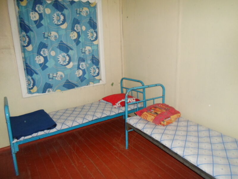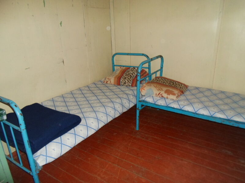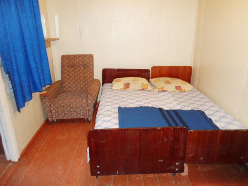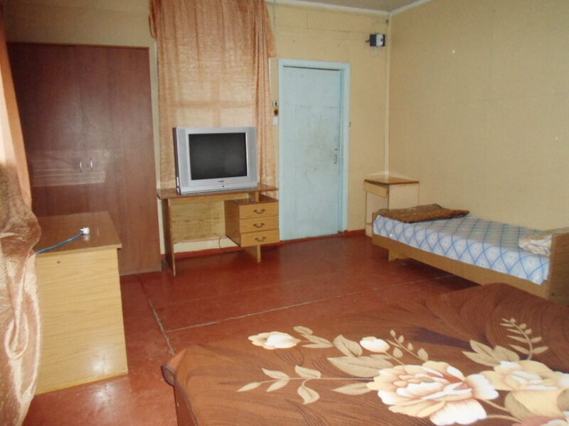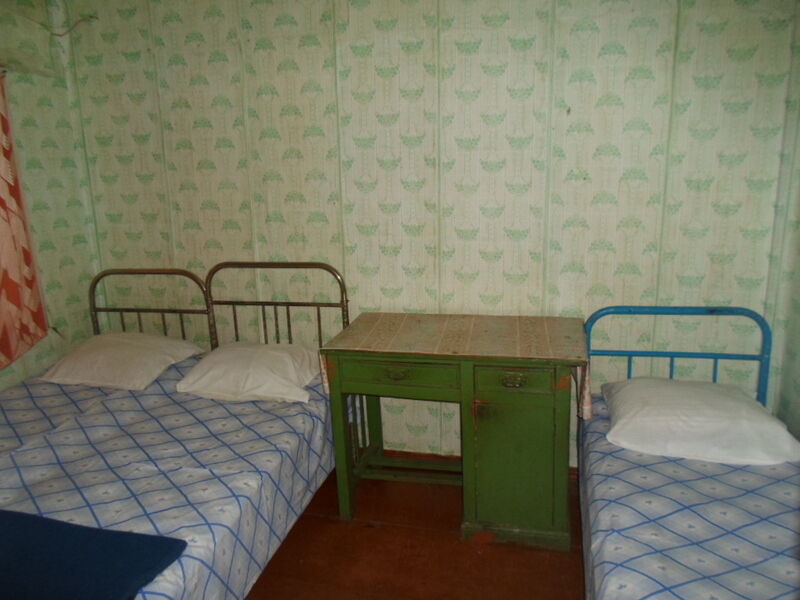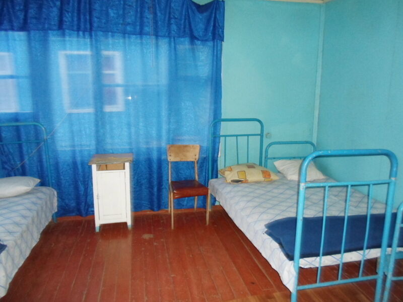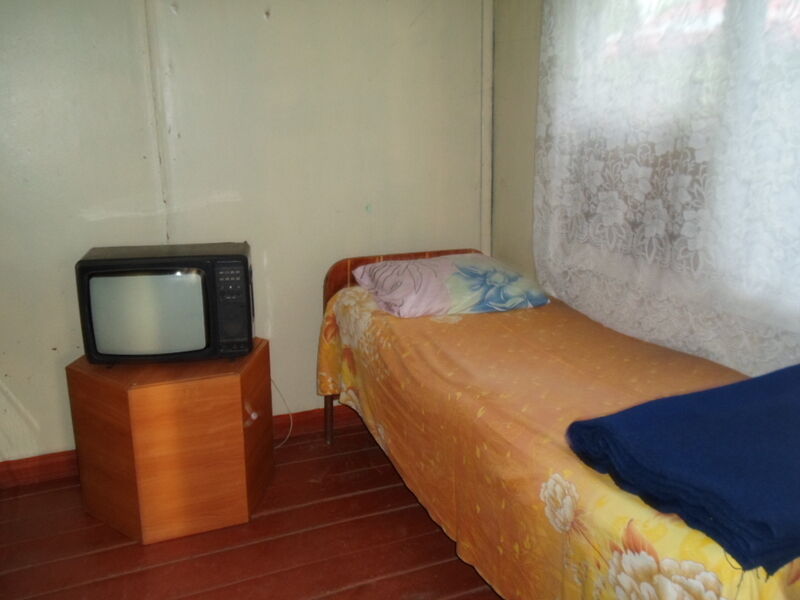 Деревянный дом состоит из 4 номеров с индивидуальными входами. Есть 2-х, 3-х и 4-х местные номера. Кровати, стол, тумбочки, холодильник.