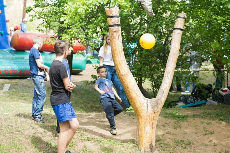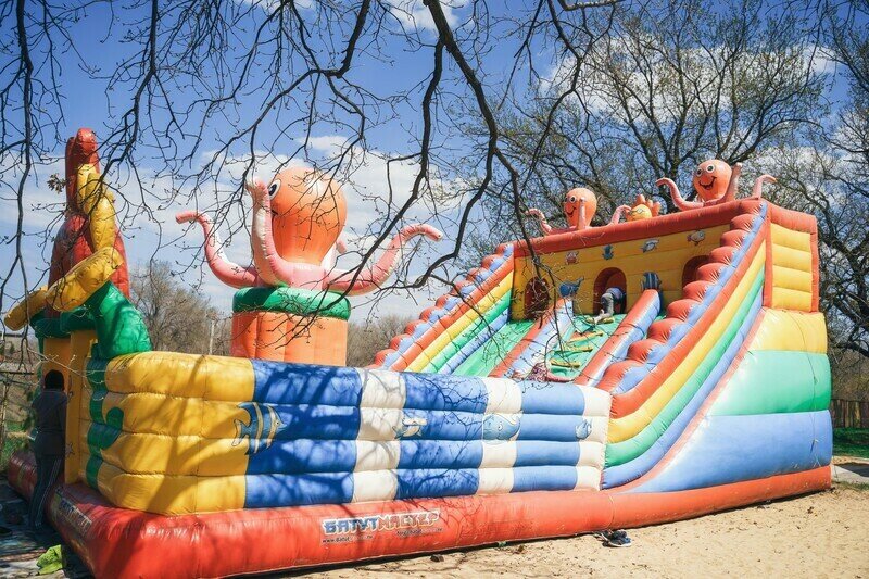 - детская площадка с аттракционами (15 шт) и батутной зоной — 300 ₽/человек. Также всегда можно заказать аниматора с программой (стоимость зависит от количества детей длительности программы);