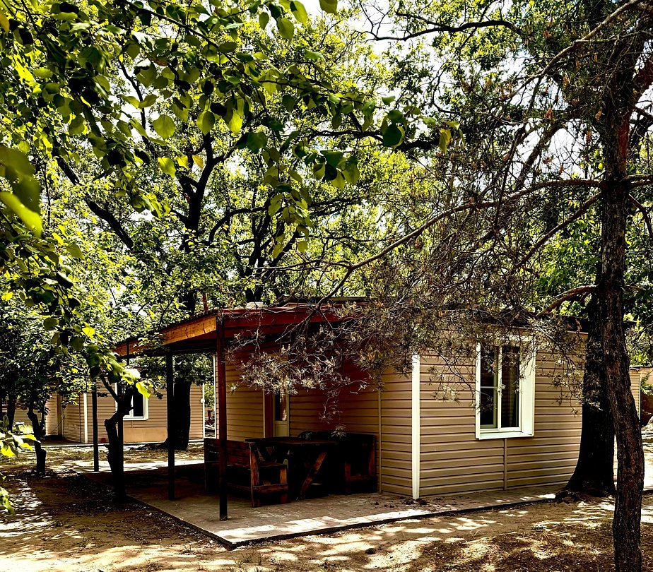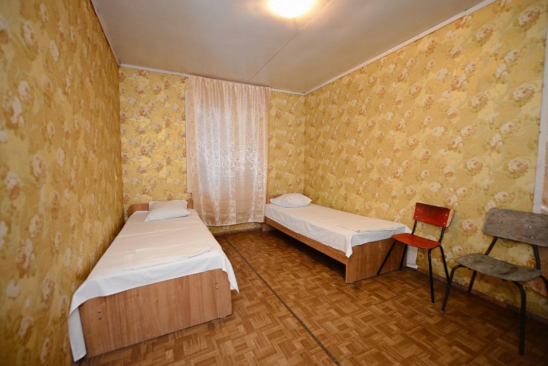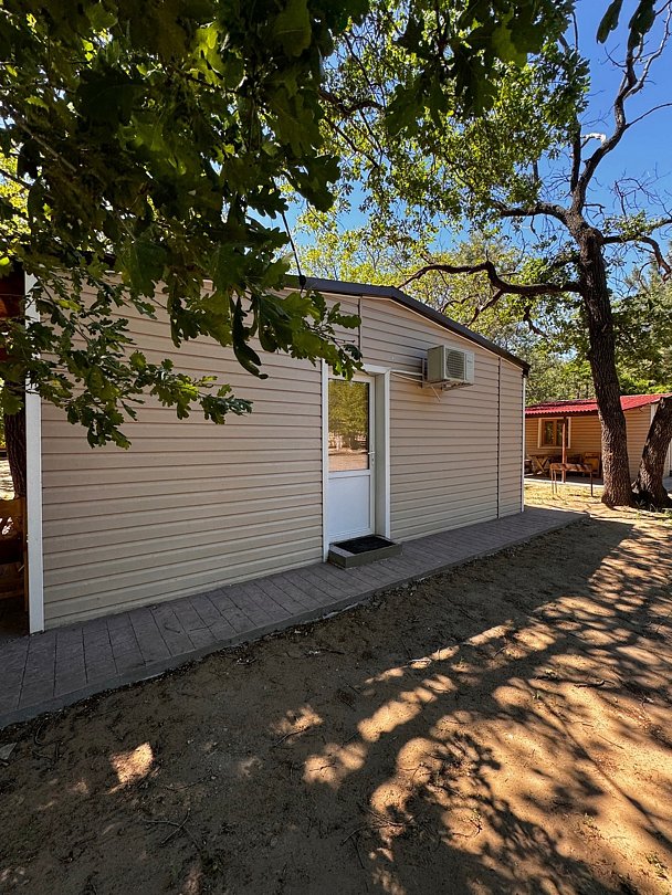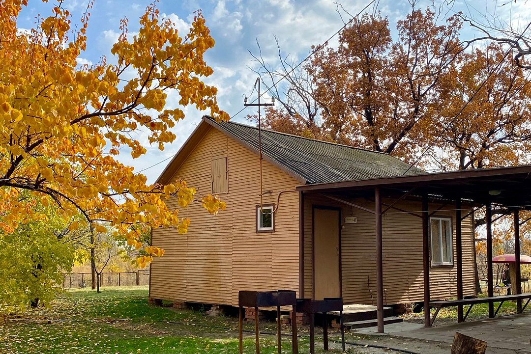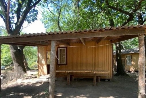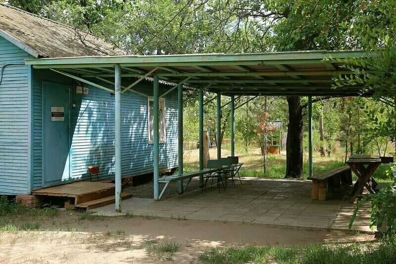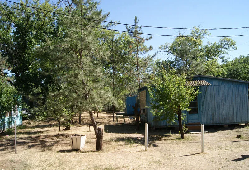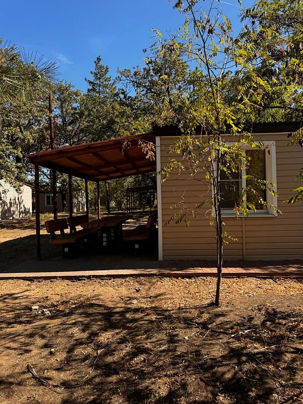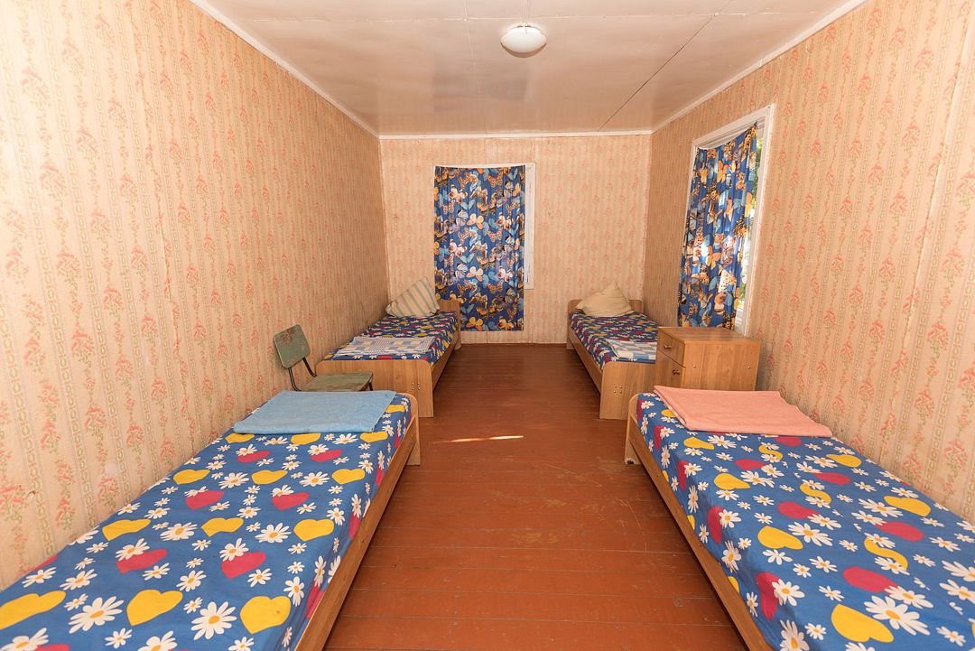 Дом с маленьким навесом до 10-ти человек, без удобств, две комнаты по 5 односпальных кроватей в каждой.