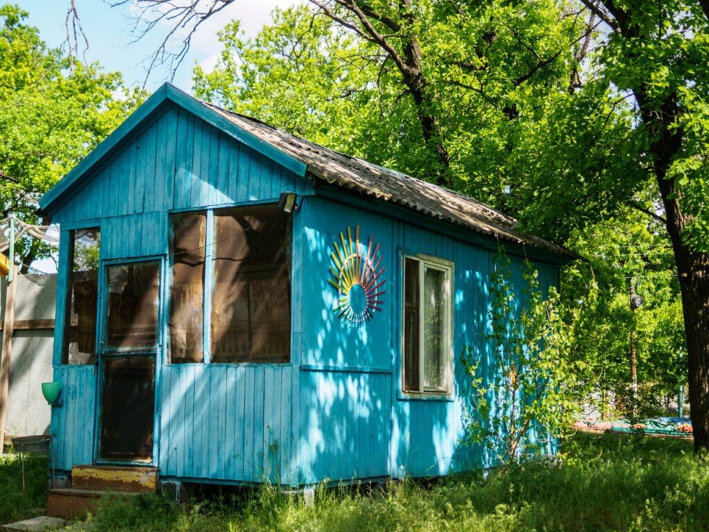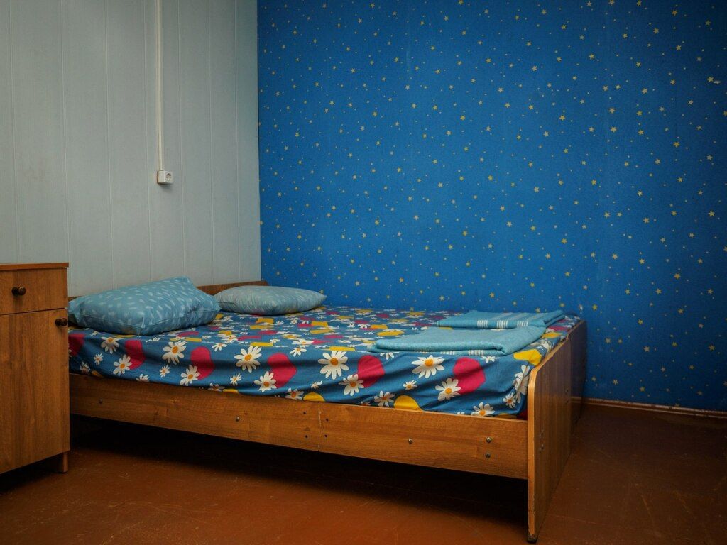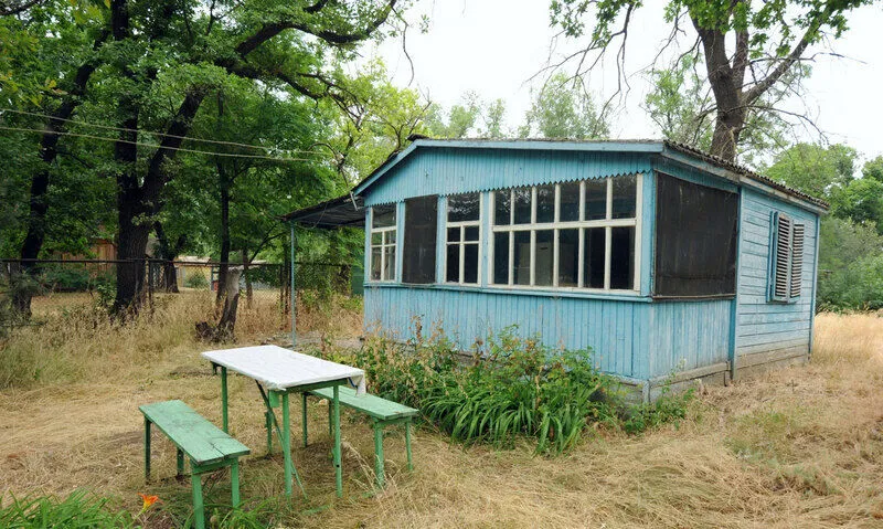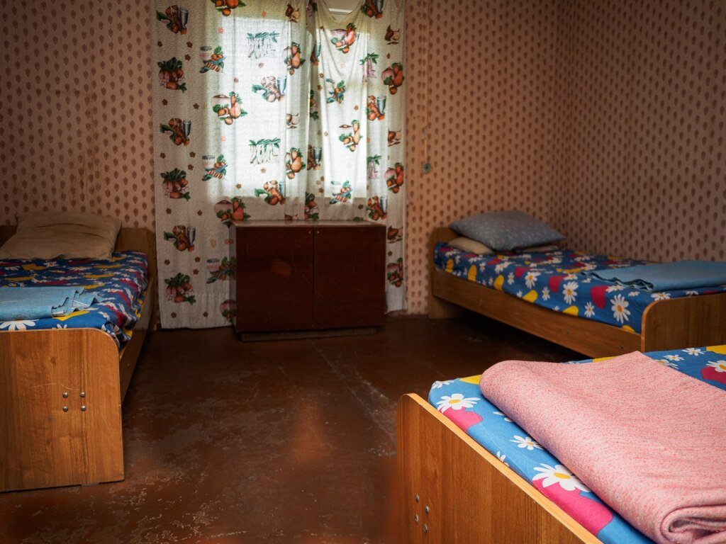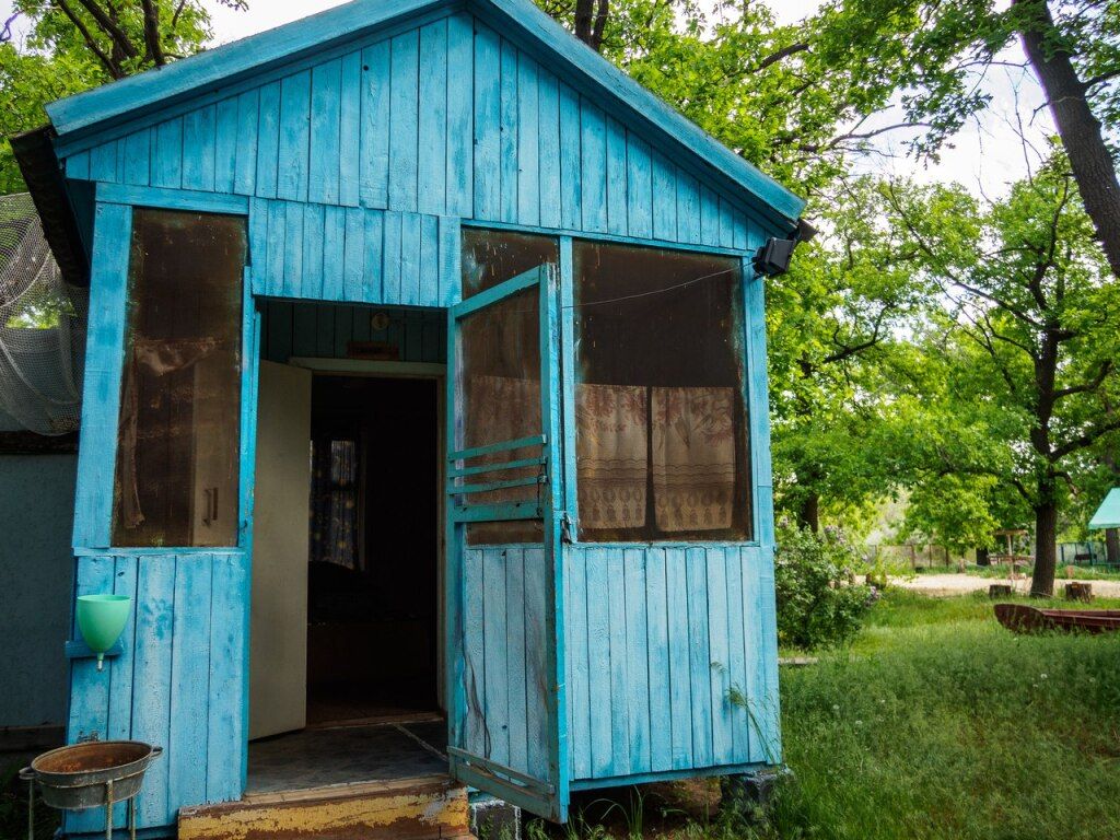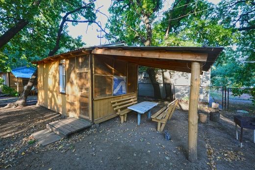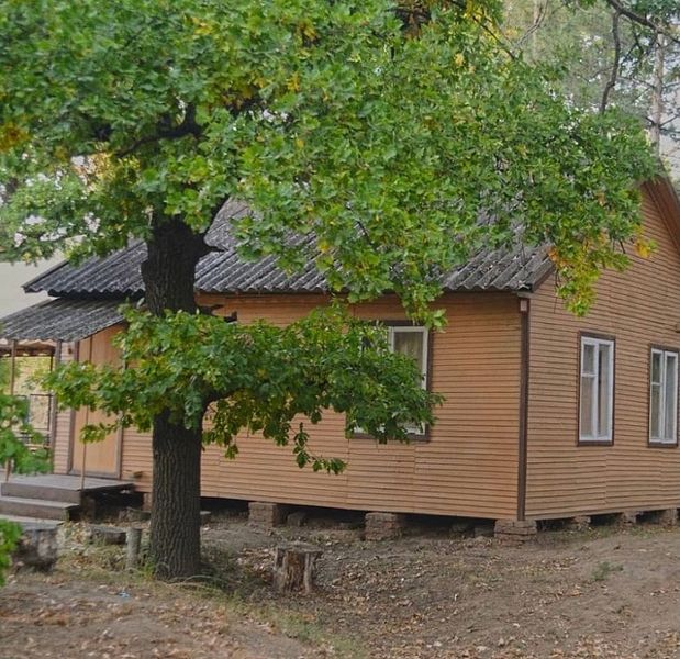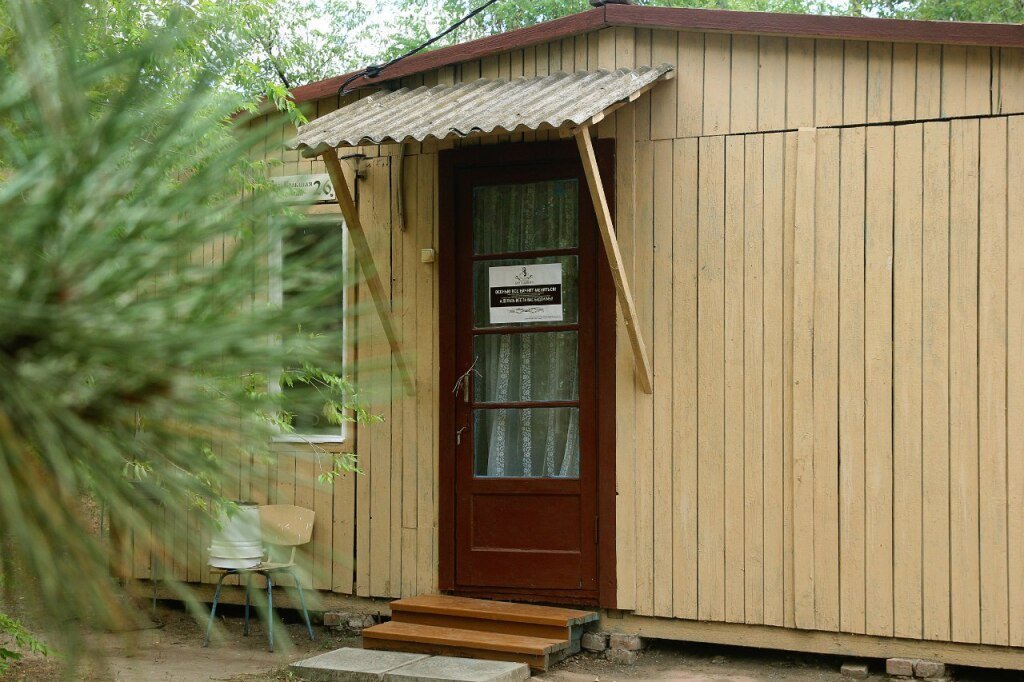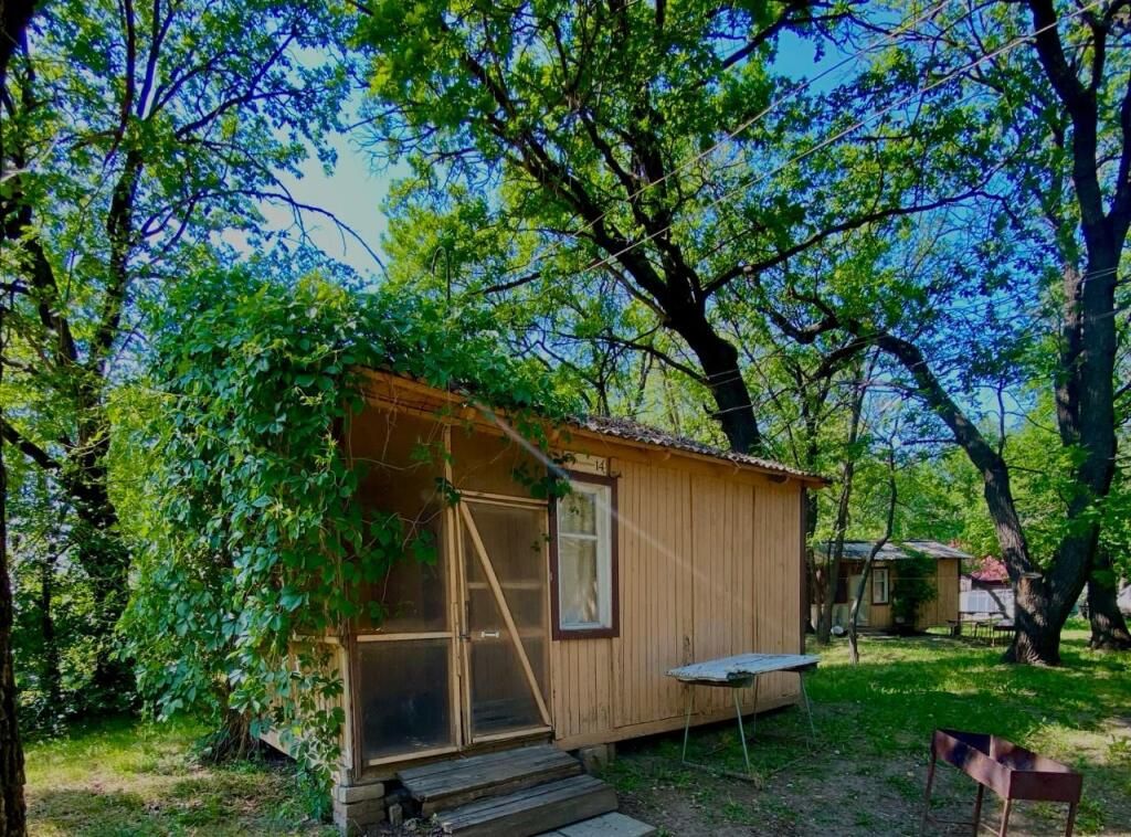 Дом с маленьким навесом до 10-ти человек, без удобств, две комнаты по 5 односпальных кроватей в каждой.