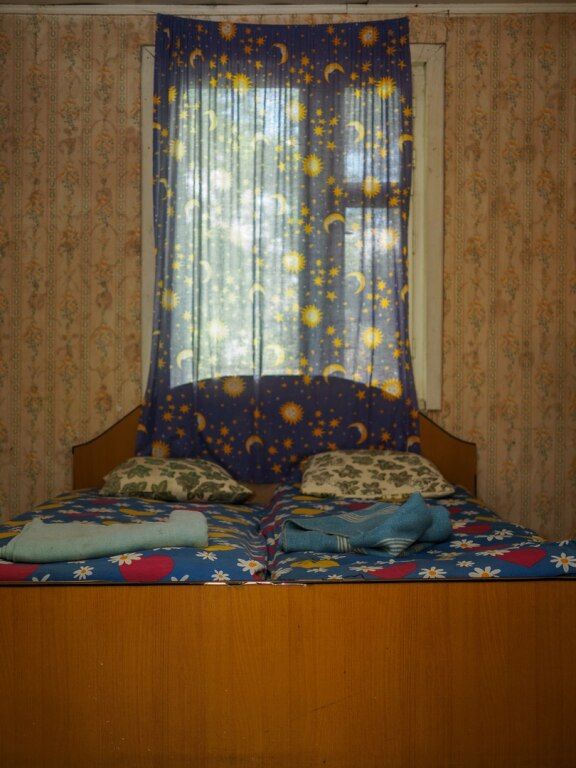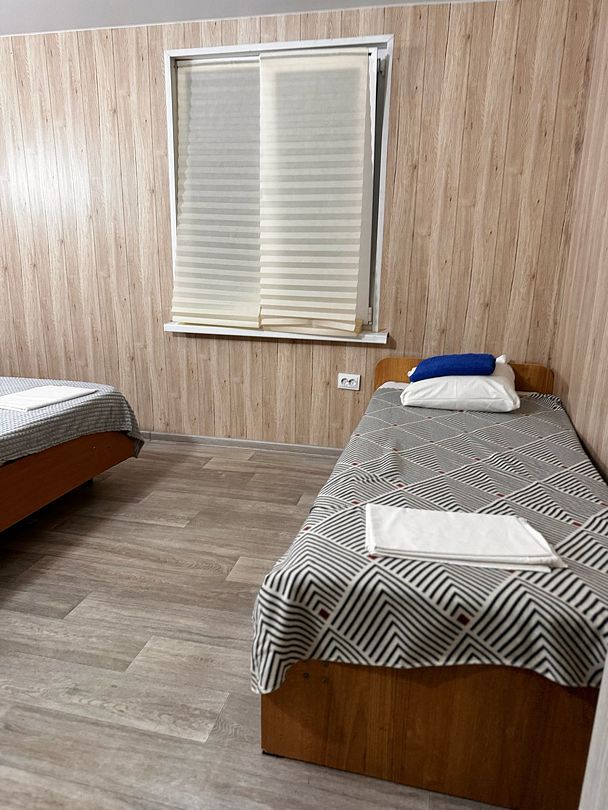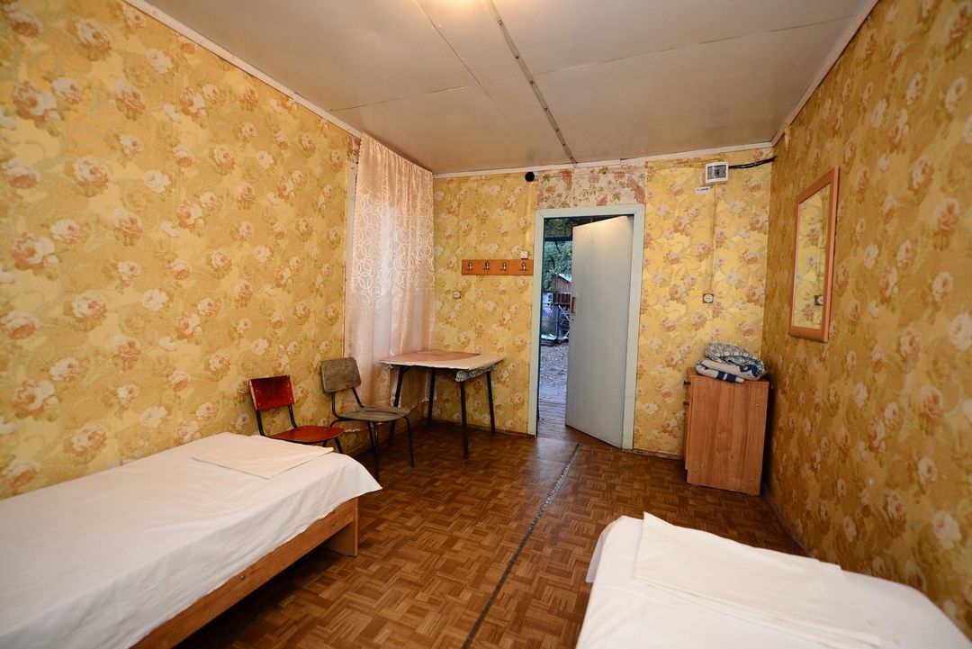 Оснащение: холодильник, мангал (один на два соседних домика), выдается постельное белье и небольшой набор посуды по запросу. Кровати деревянные односпальные.