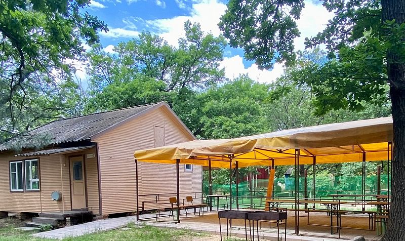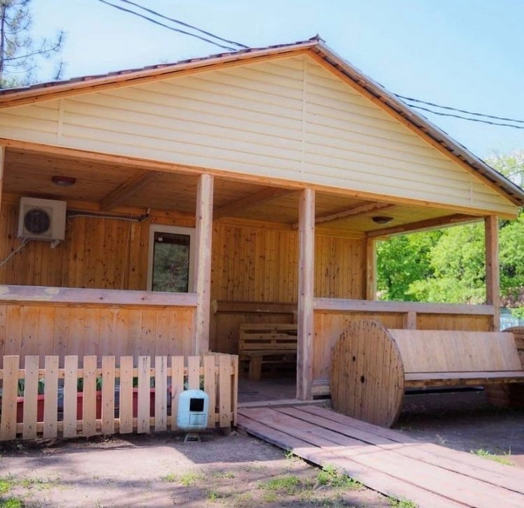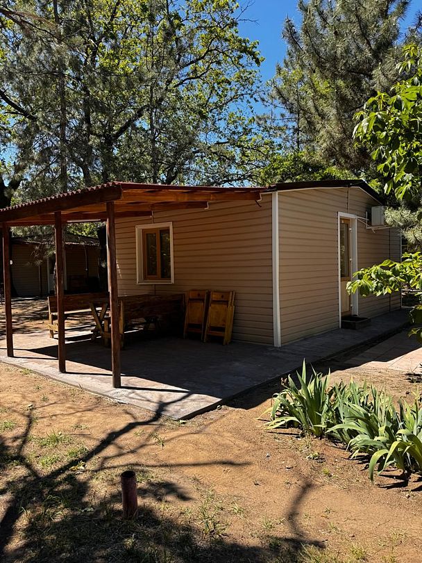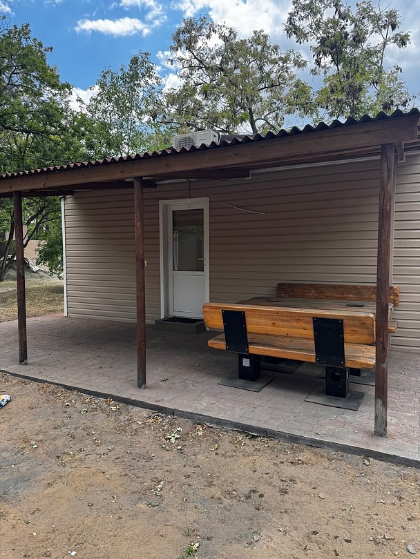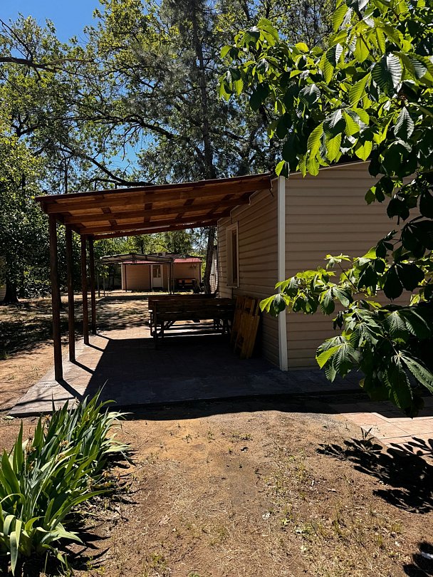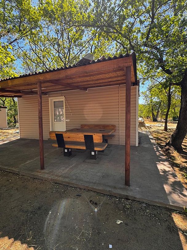 Большой навес на 40 человек. 10-ми местный домик с двумя спальнями (без удобств).