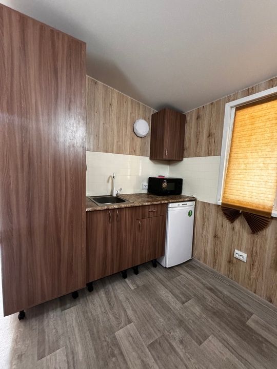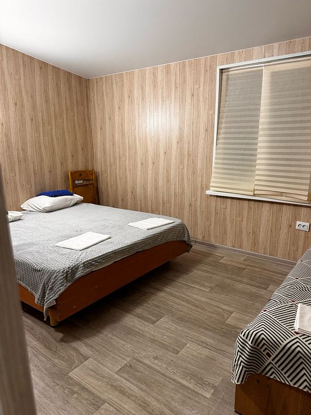 В комнате двуспальная и односпальная кровать, на кухне полутороспальный раскладывающийся диван.