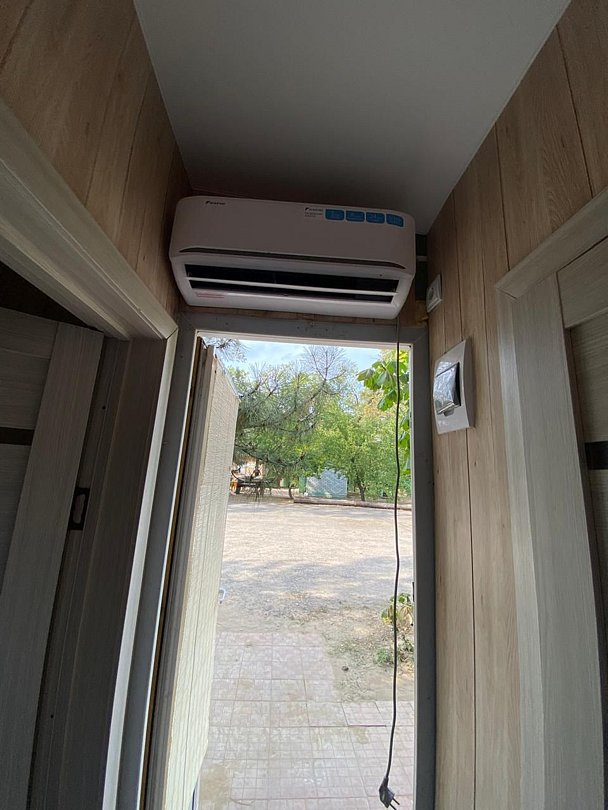 В стоимость входит: постельное белье, чайник, холодильник, мангал (один на 2 соседних домика), набор посуды по запросу. Удобства (душ и санузел) находятся на территории.